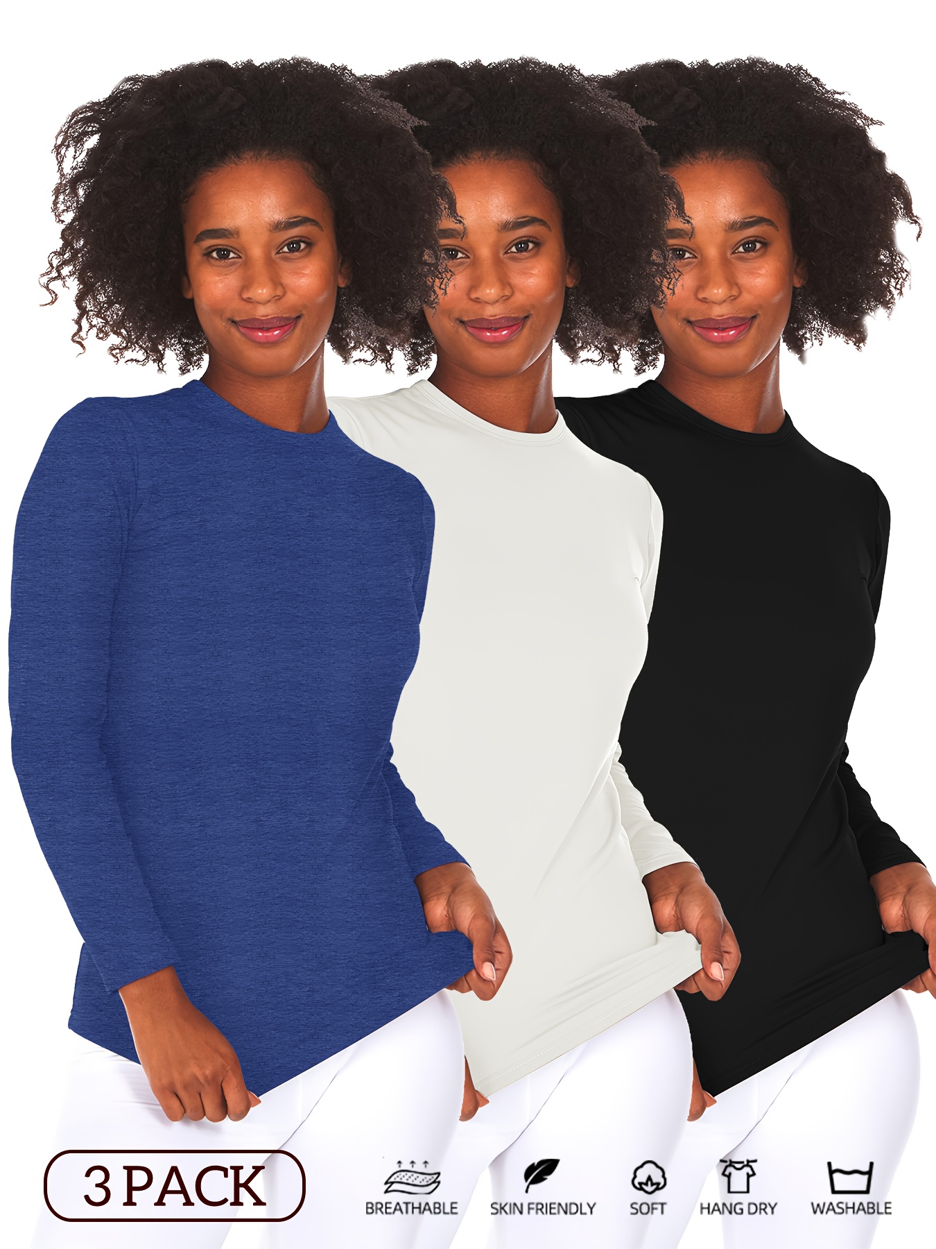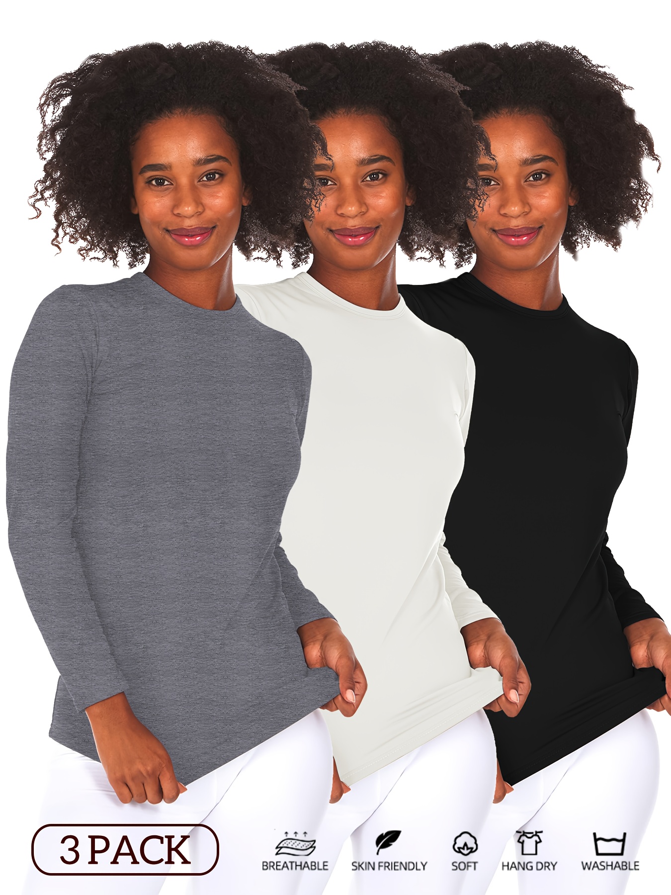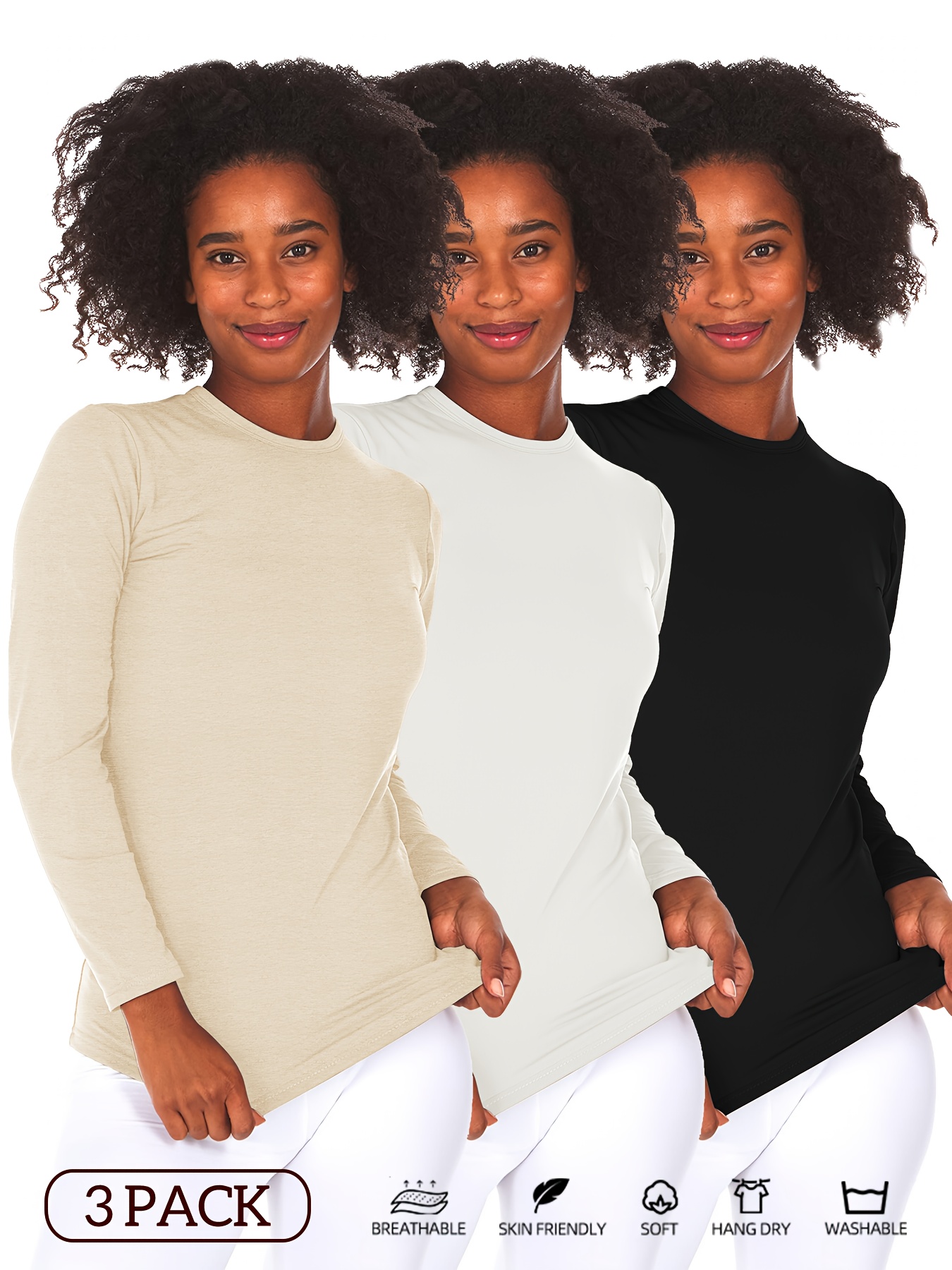 Home Women's Athleisure 3pcs Set Of European And American Style Solid Color Long Sleeved Base Top, Slim Fit And Casual Inner Layer, Anti Pilling, No Ironing, Not Easy to Deform And Fold Through Artifact