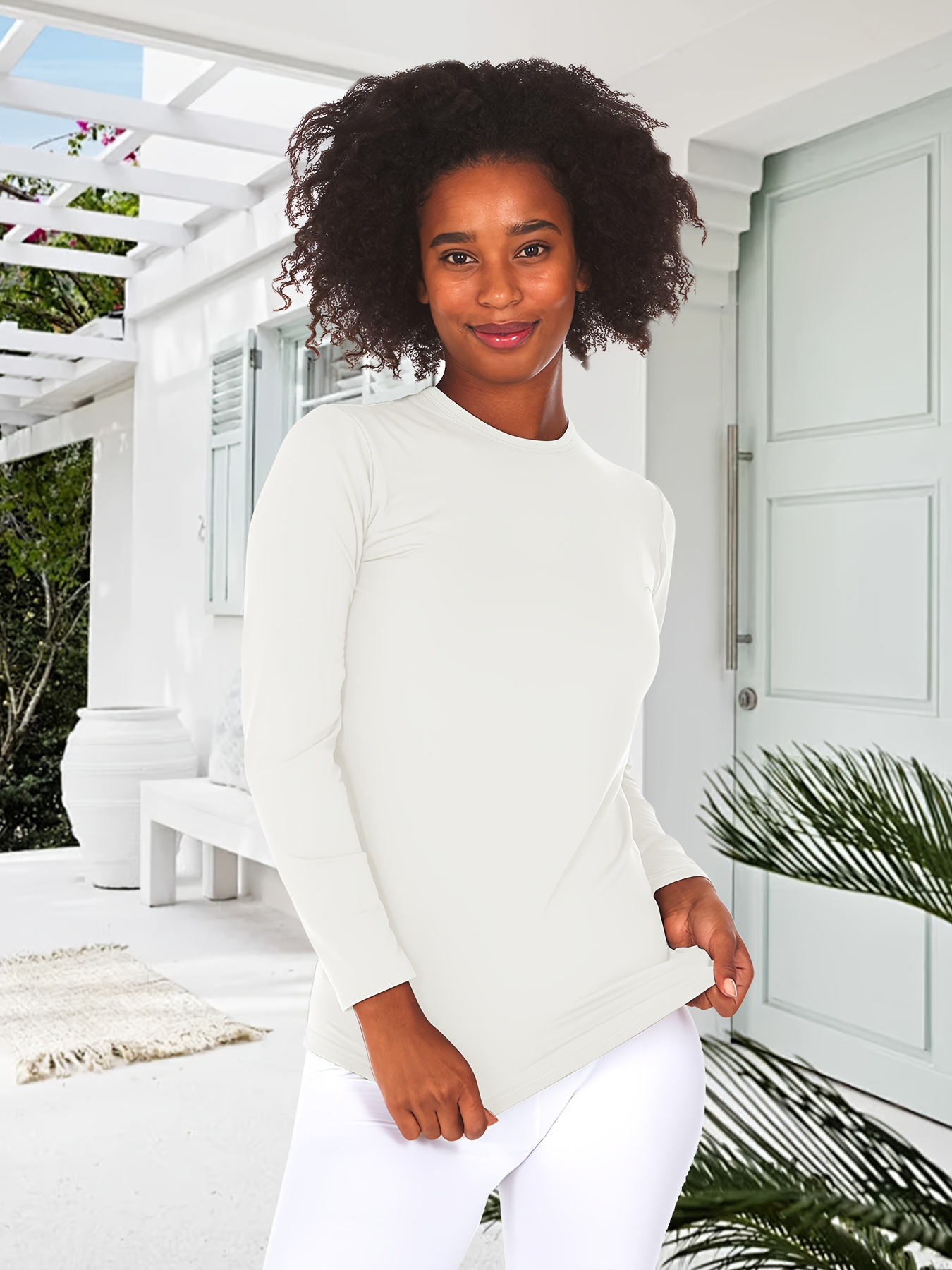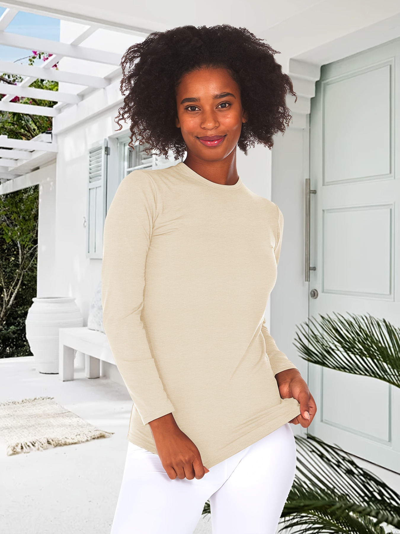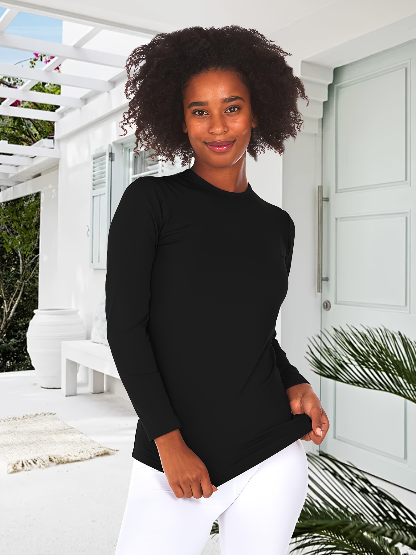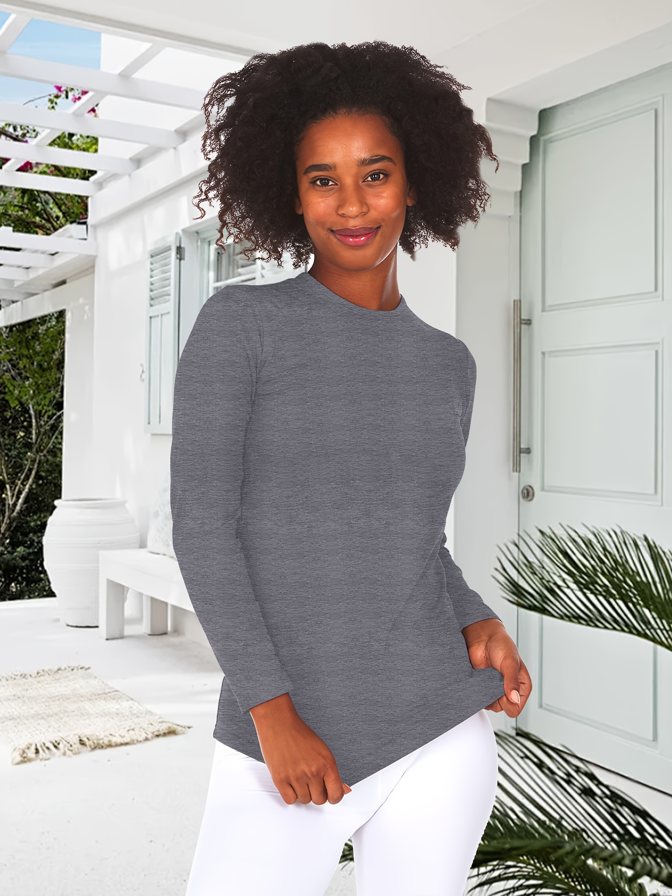 Home Women's Athleisure 3pcs Set Of European And American Style Solid Color Long Sleeved Base Top, Slim Fit And Casual Inner Layer, Anti Pilling, No Ironing, Not Easy to Deform And Fold Through Artifact