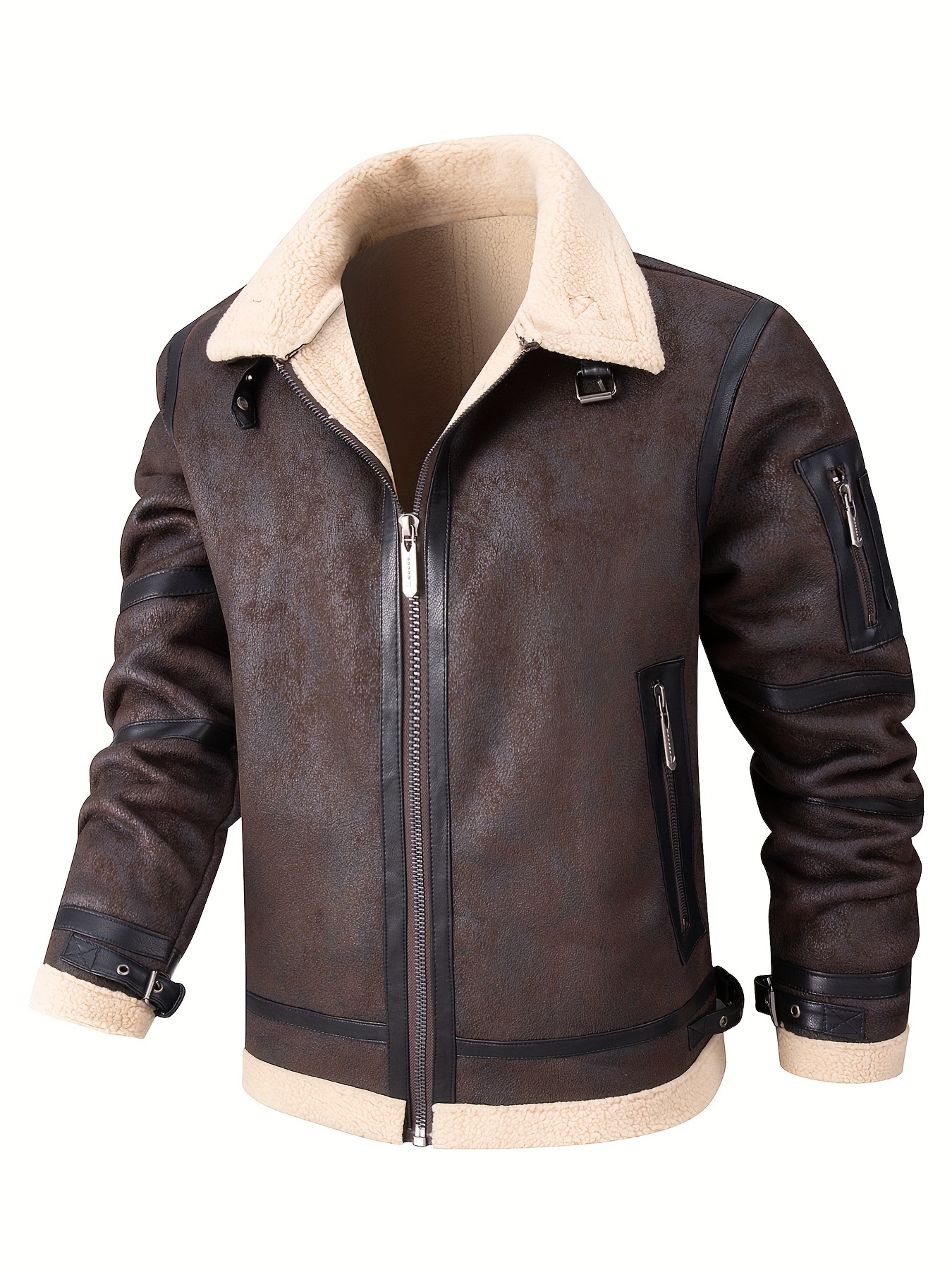 Men’S Heavy-Duty Jacket – Thick Winter Coat with Zipper Closure, Long Sleeves, Polyester – Brown – Cold Weather Outerwear for, Casual & Formal Events – Durable & Easy-clean Design, Winter Jacket, Formal Event Attire, Classic Collar