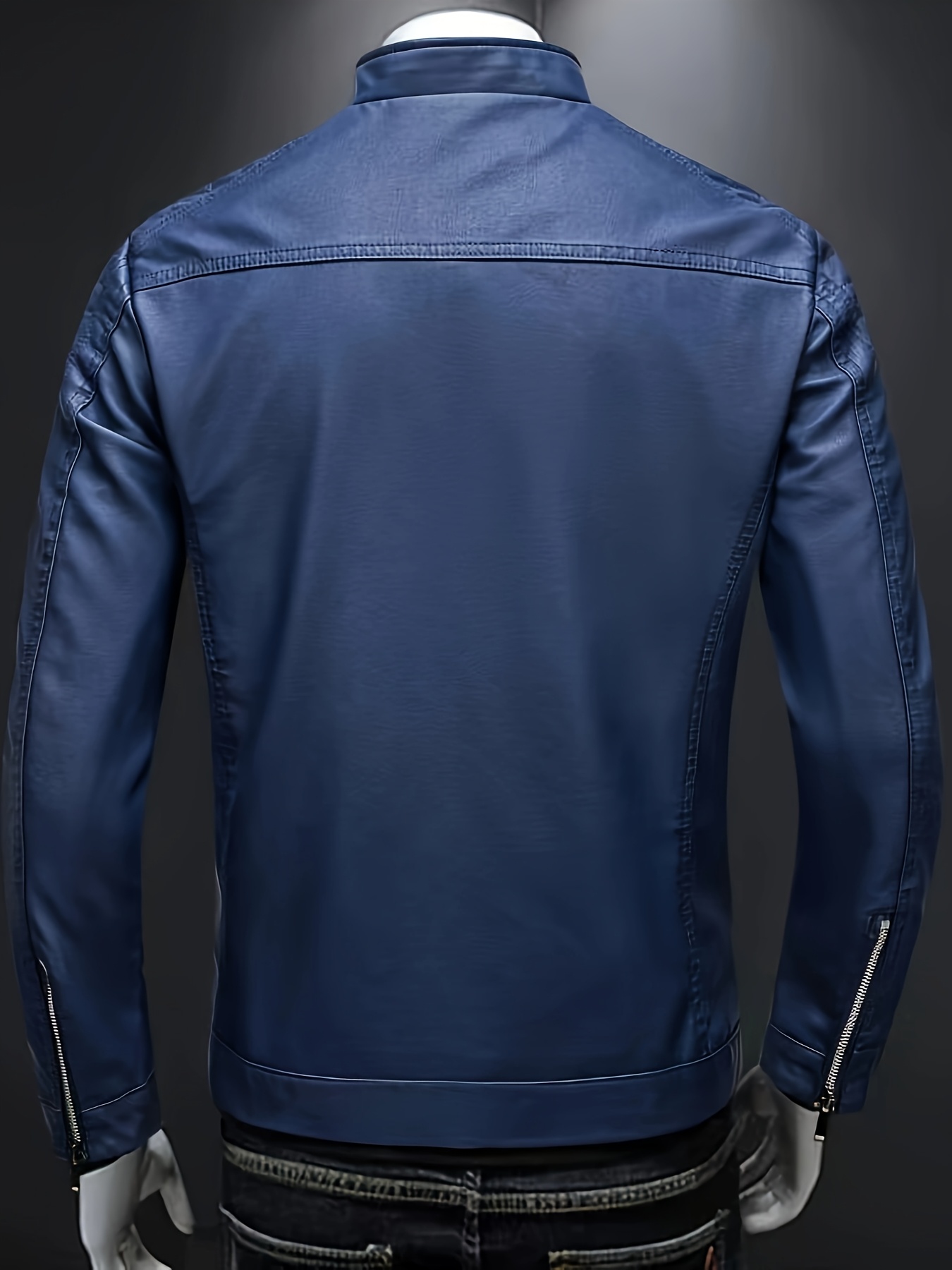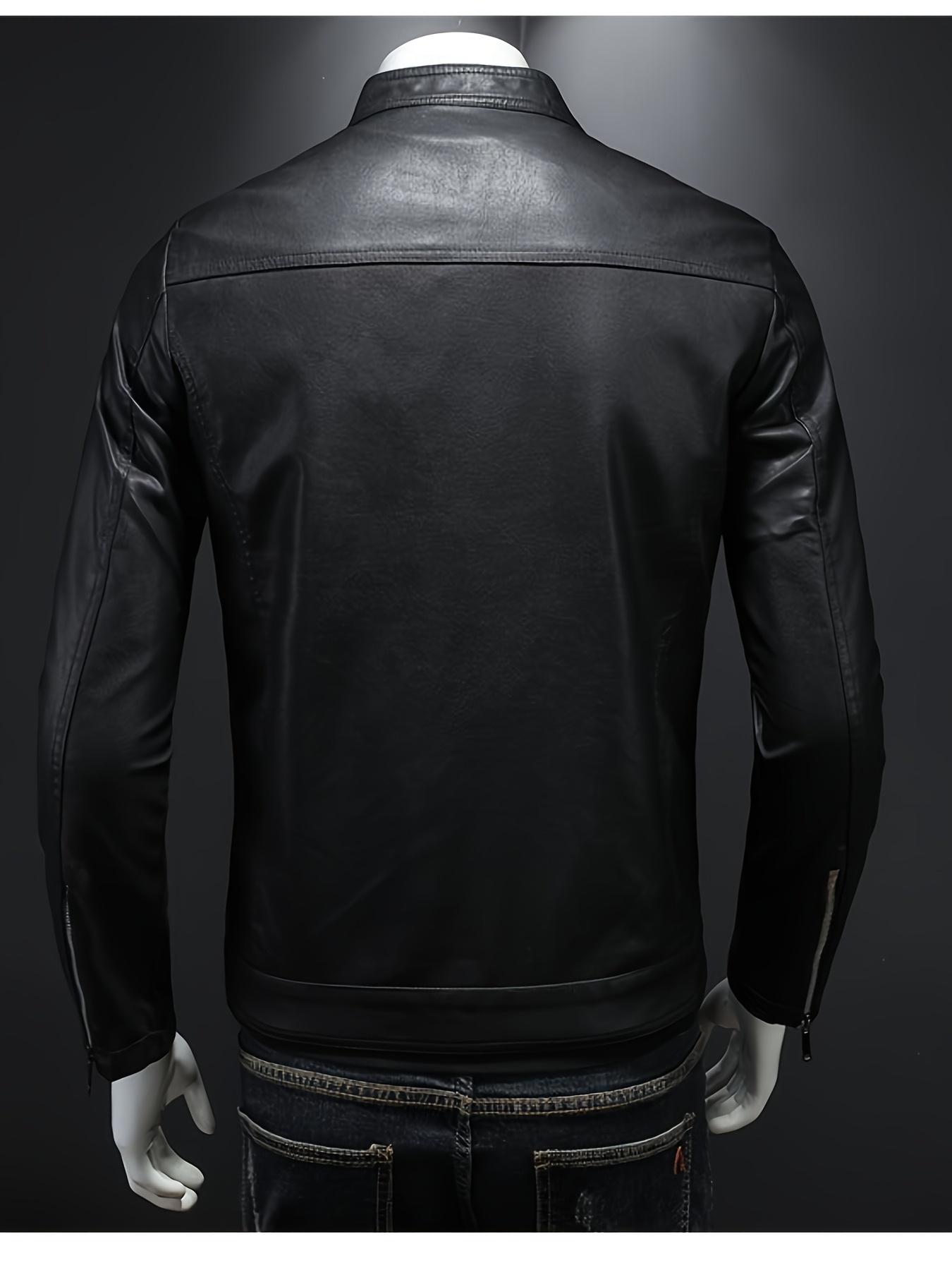 Home Men's Jackets &Coats Men’S Trendy Casual Jacket – Elegant Stand Collar, Zipper Front, Long Sleeves with Pockets, Black, Regular Fit for Casual Attire, Casual Jacket | Sleek Black Jacket | Polyester Lining