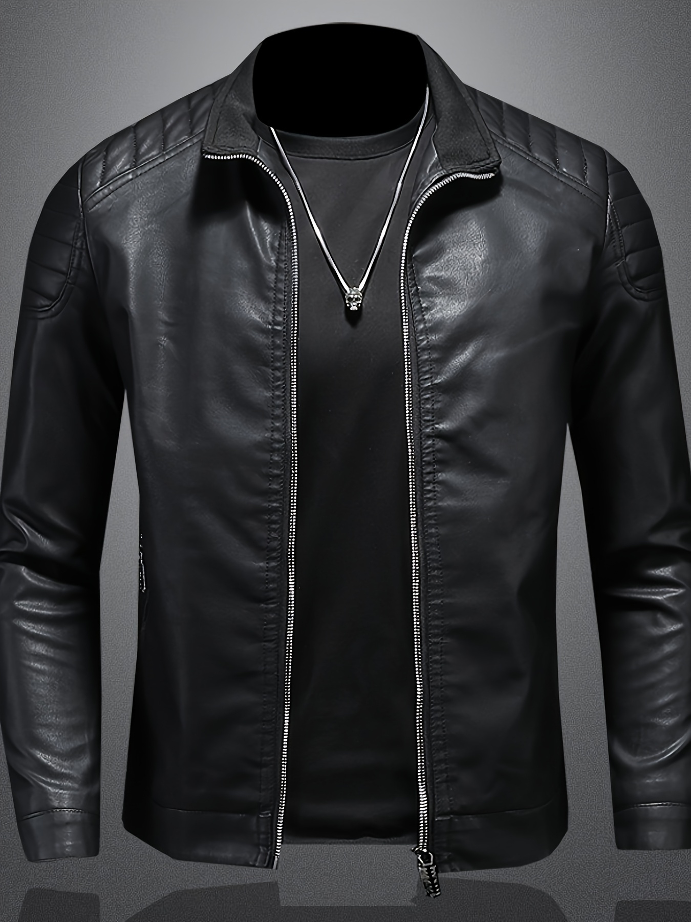 Men’S Trendy Casual Jacket – Elegant Stand Collar, Zipper Front, Long Sleeves with Pockets, Black, Regular Fit for Casual Attire, Casual Jacket | Sleek Black Jacket | Polyester Lining