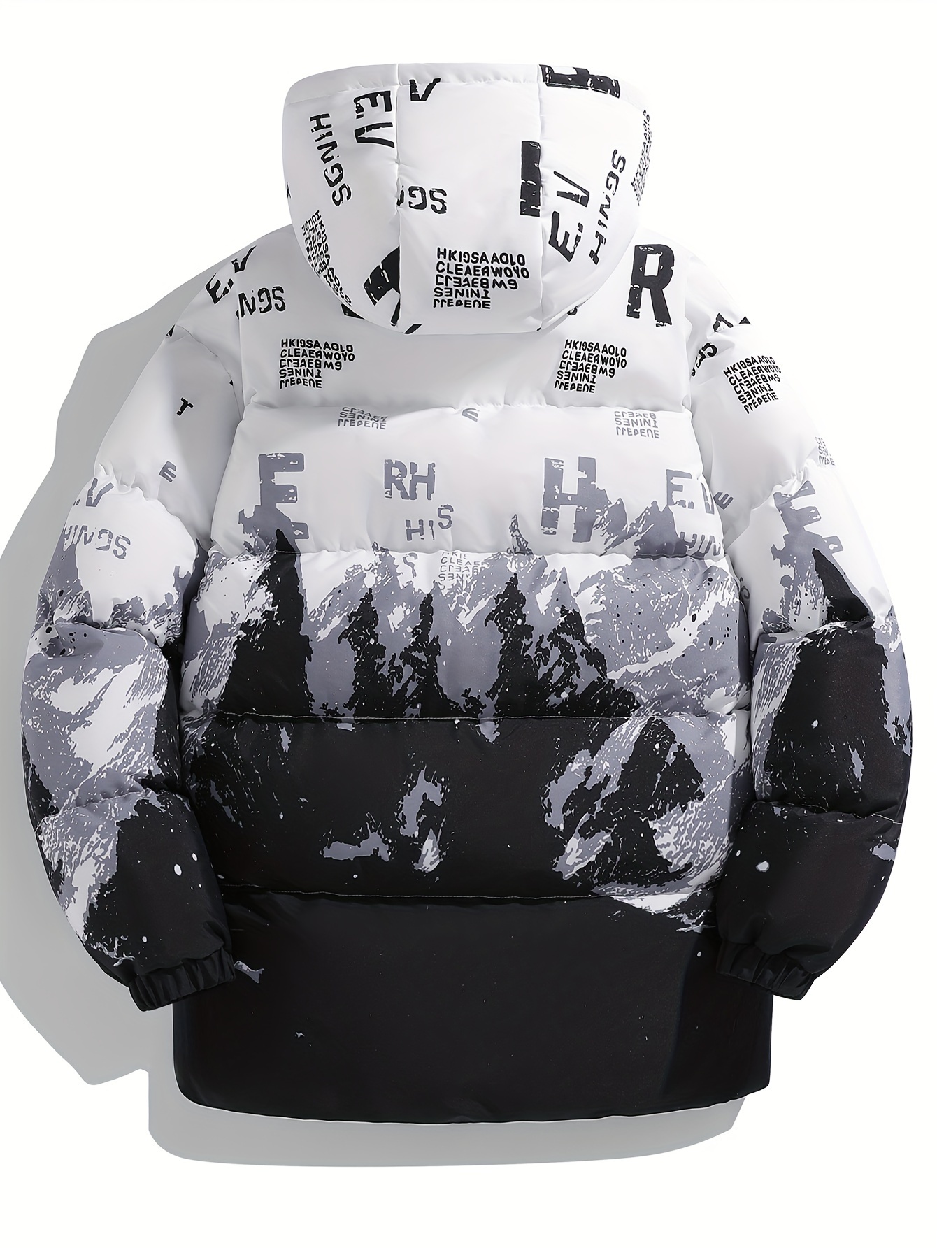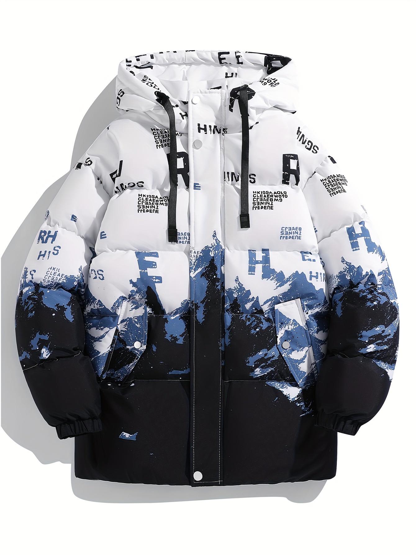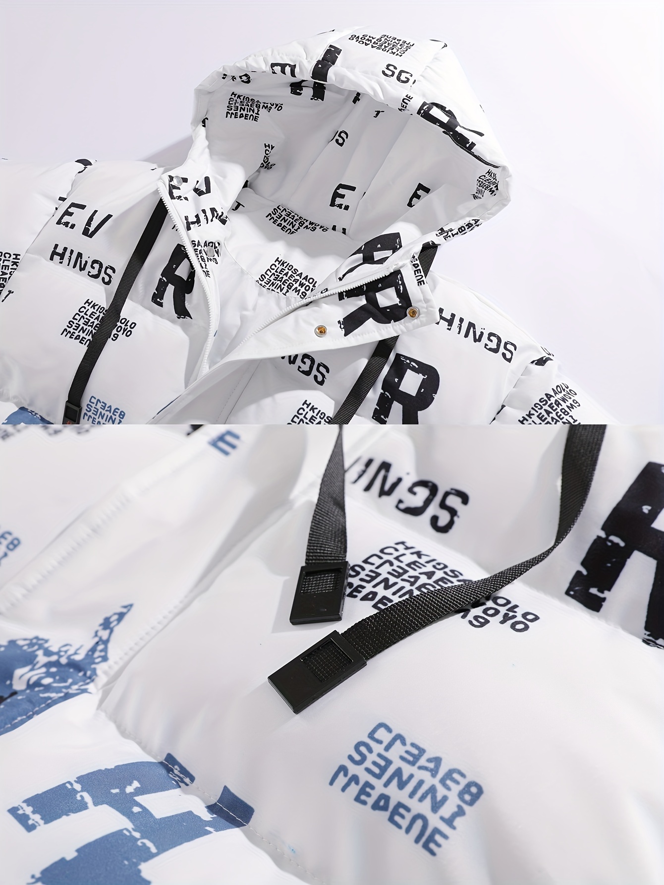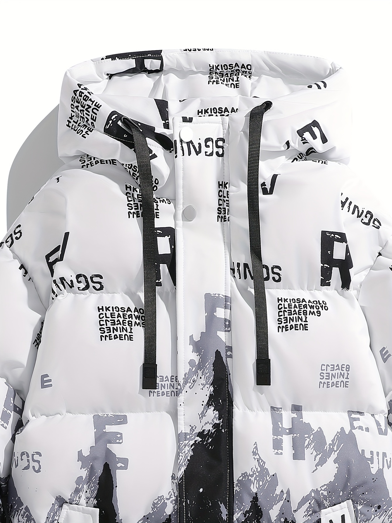 New Print Graffiti Hooded Jacket, Thick And Warm, Suitable for Men, Versatile Coat.