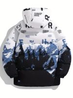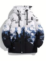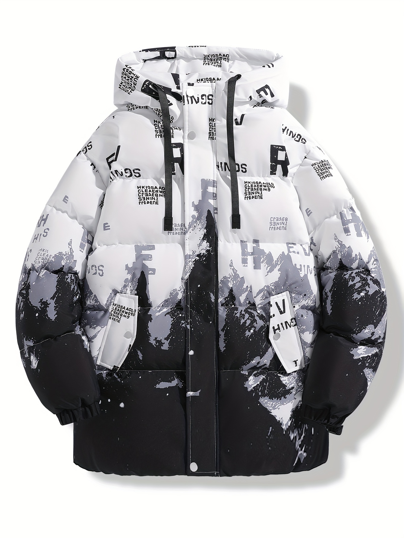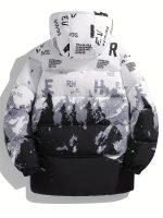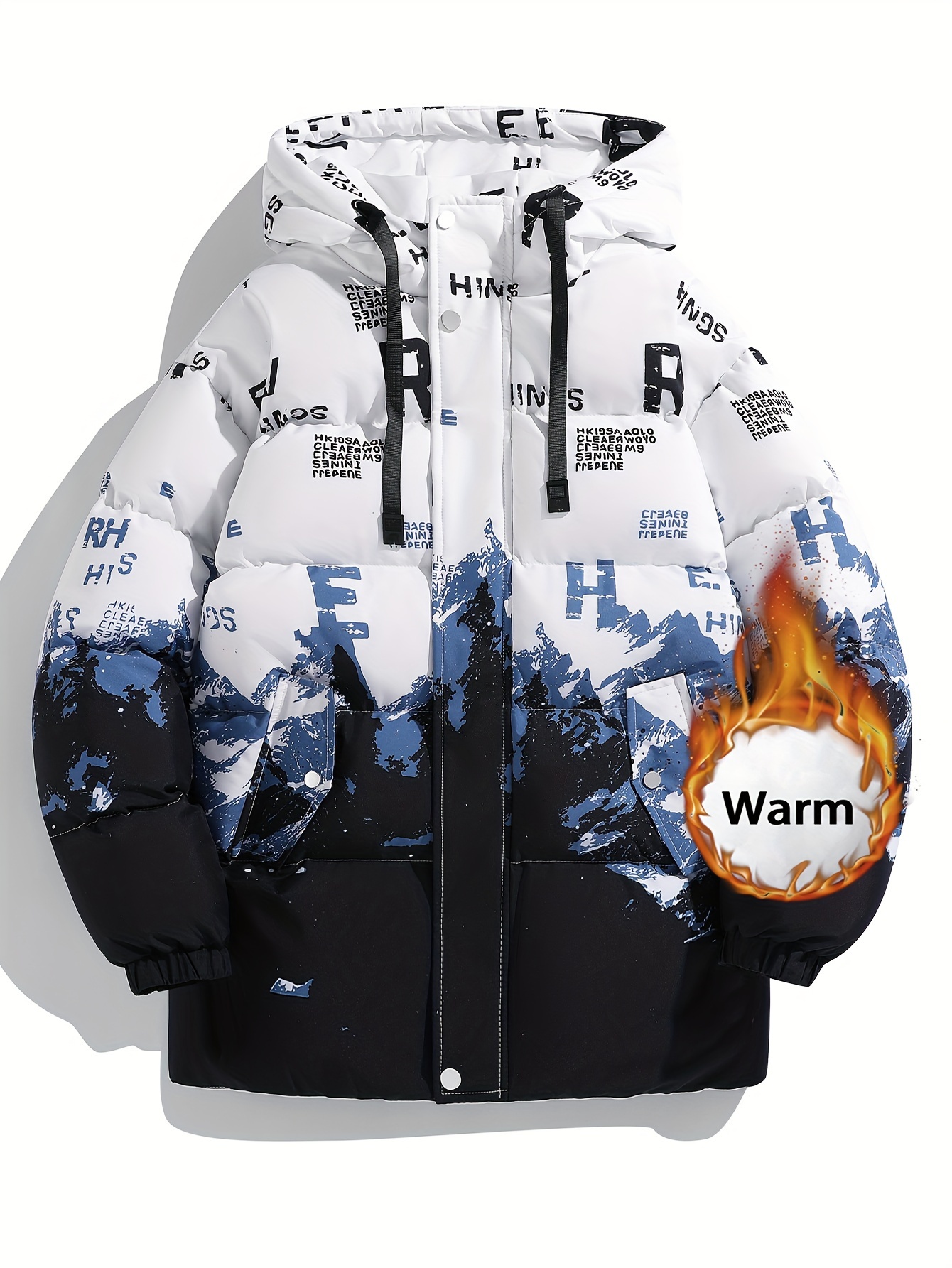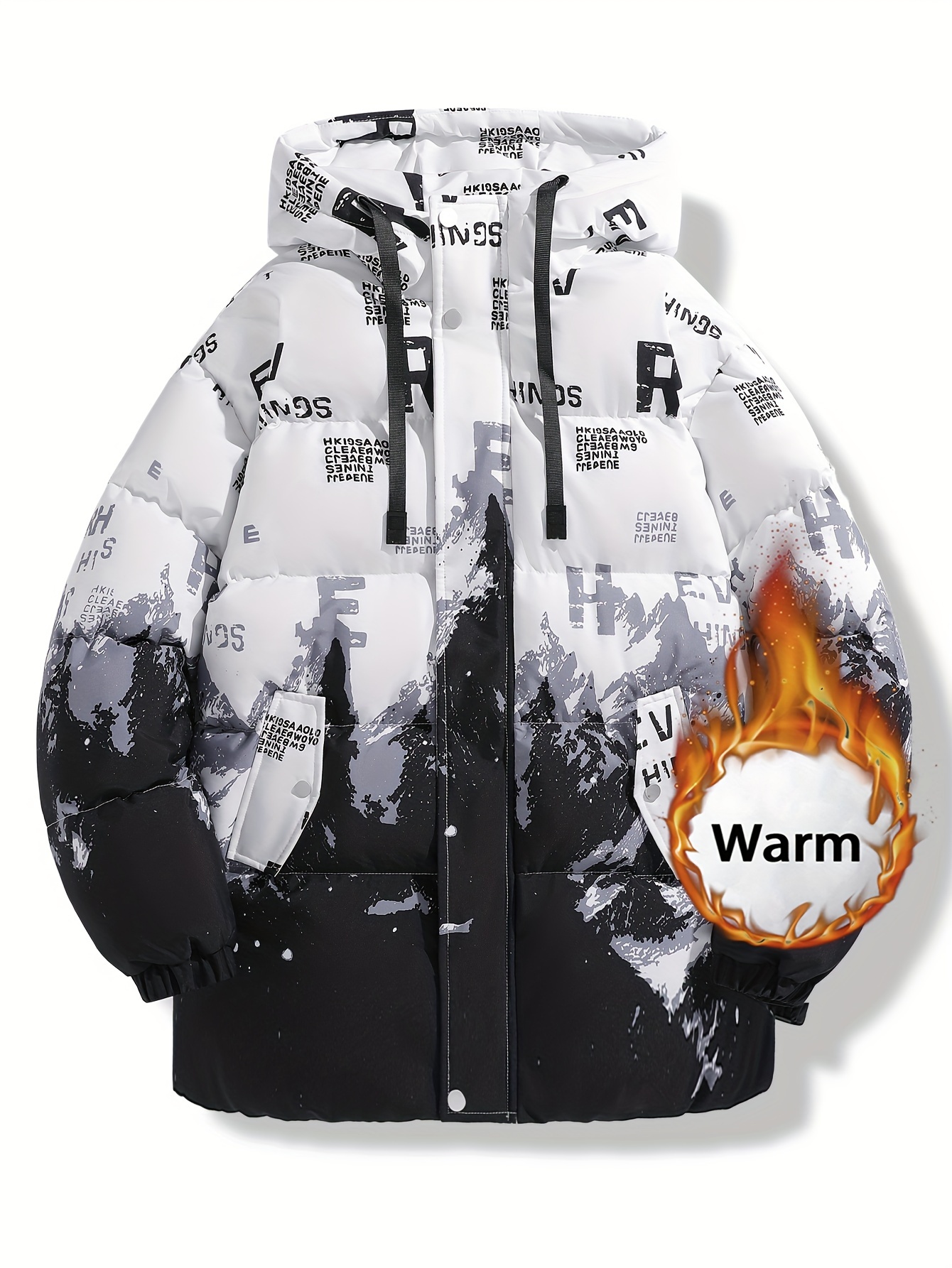 Home Men's Jackets &Coats New Print Graffiti Hooded Jacket, Thick And Warm, Suitable for Men, Versatile Coat.