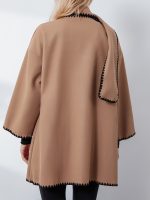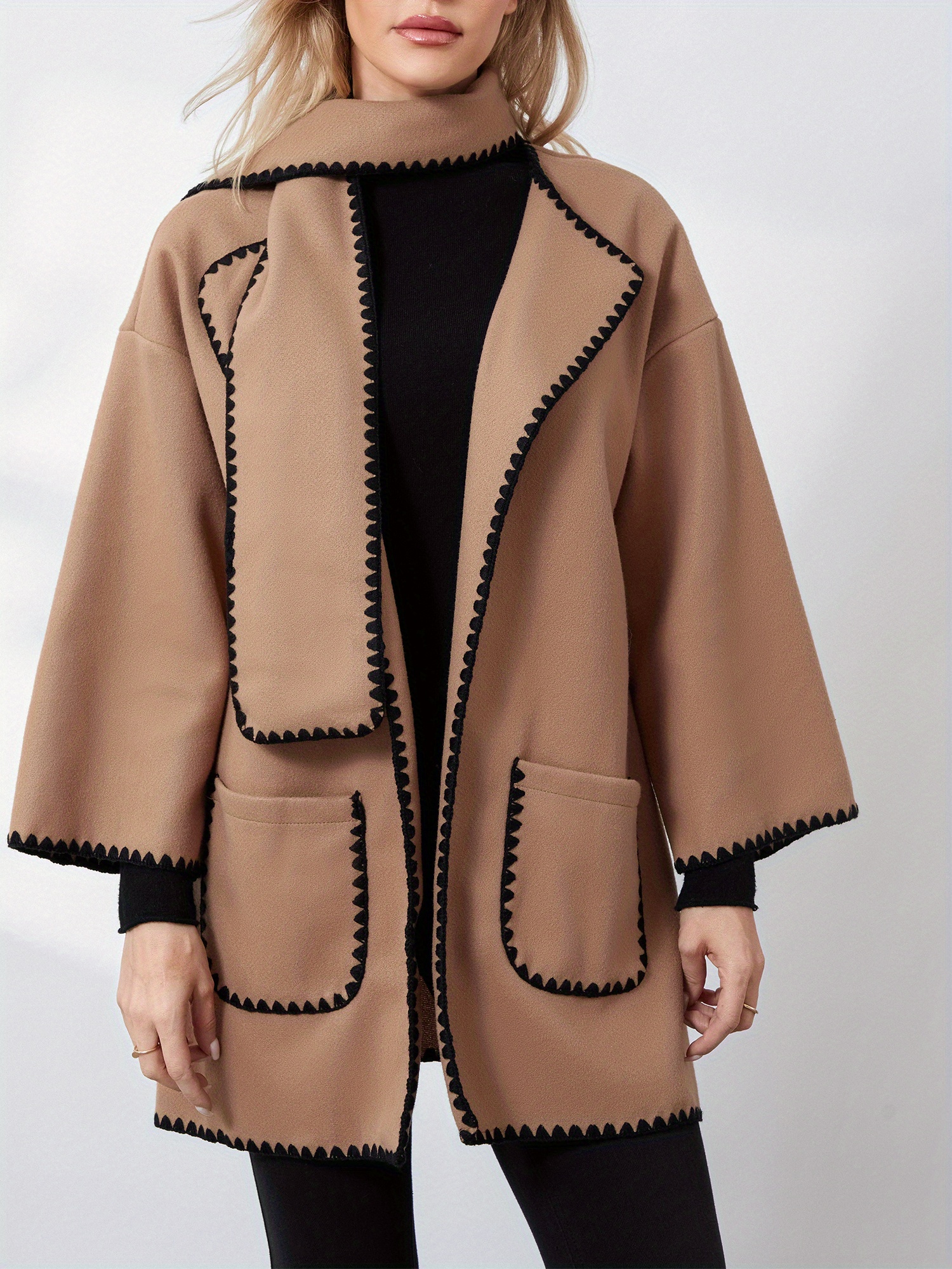 Home Women's Coats & Jackets Two-Piece Winter Set Featuring a Loose Women’S Coat with a Turn- Collar And an Open Front, Complemented by a Contrasting Edge Scarf.