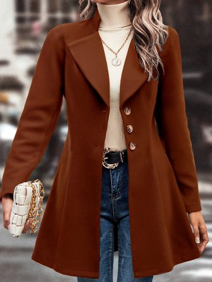 Women’s Winter Trench Coats Single Breasted Mid-Length Solid Stylish Warm Notched Collar Blend Overcoats, Everyday Winter Wear, Winter Outerwear, Stylish Overcoat, Classic Trench Coat, Warm Material, Women’s Overcoat, Long Coat, Winter Wardrobe
