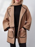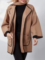 Be the first to review “Two-Piece Winter Set Featuring a Loose Women’S Coat with a Turn- Collar And an Open Front, Complemented by a Contrasting Edge Scarf.” Cancel reply