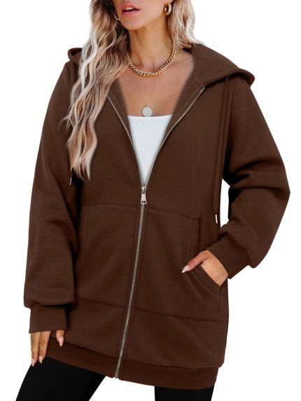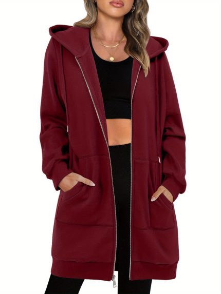 Women’S Casual Long Hoodie Jacket Fall Sweaters Tops Zip Up Sweatshirts Winter Clothes