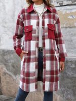 Home Women's Coats & Jackets Women’s Casual Checkered Coat Khaki Gray & Burgundy – Machine Washable Winter Coat with Pockets, Versatile Cold Weather Outerwear for Everyday Style, Ladies Winter Coats, Durable Fabric