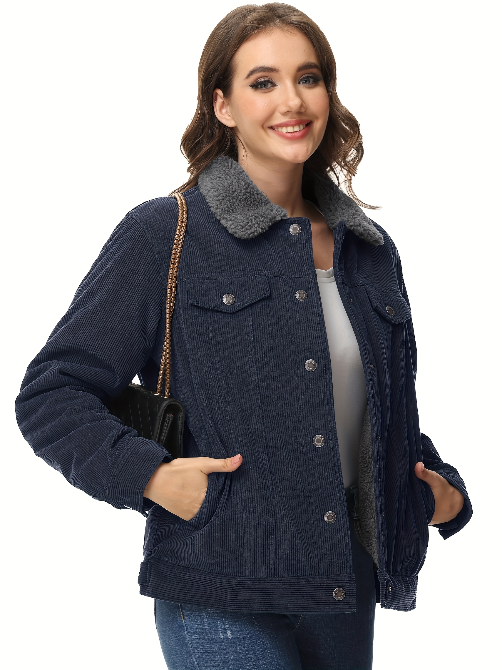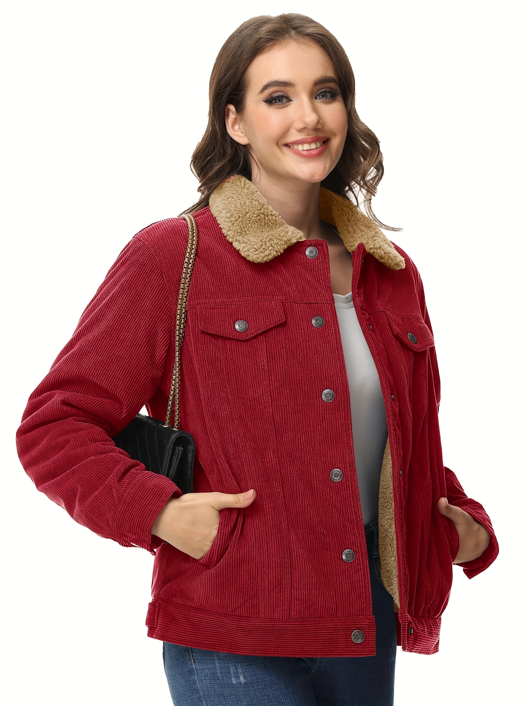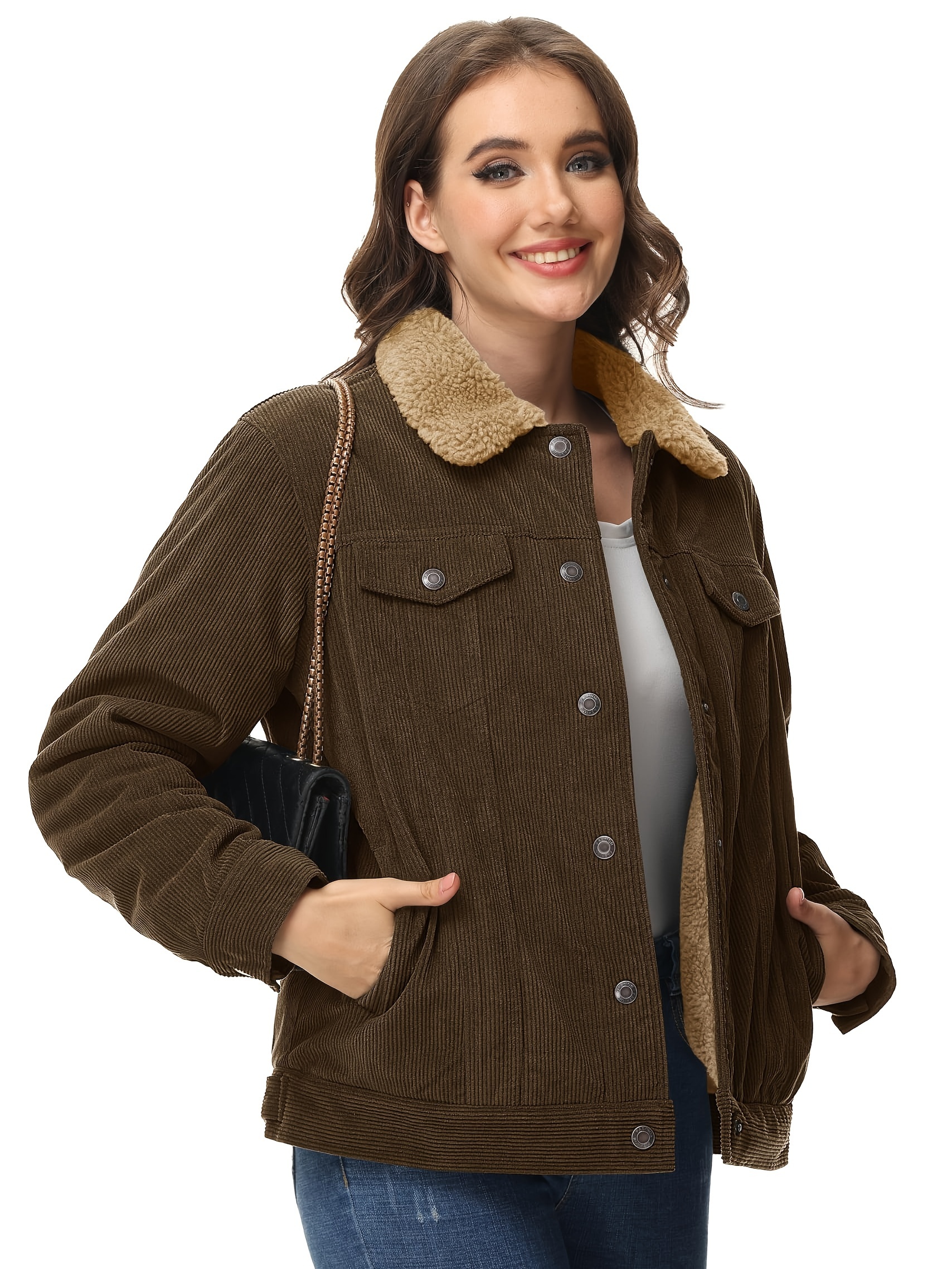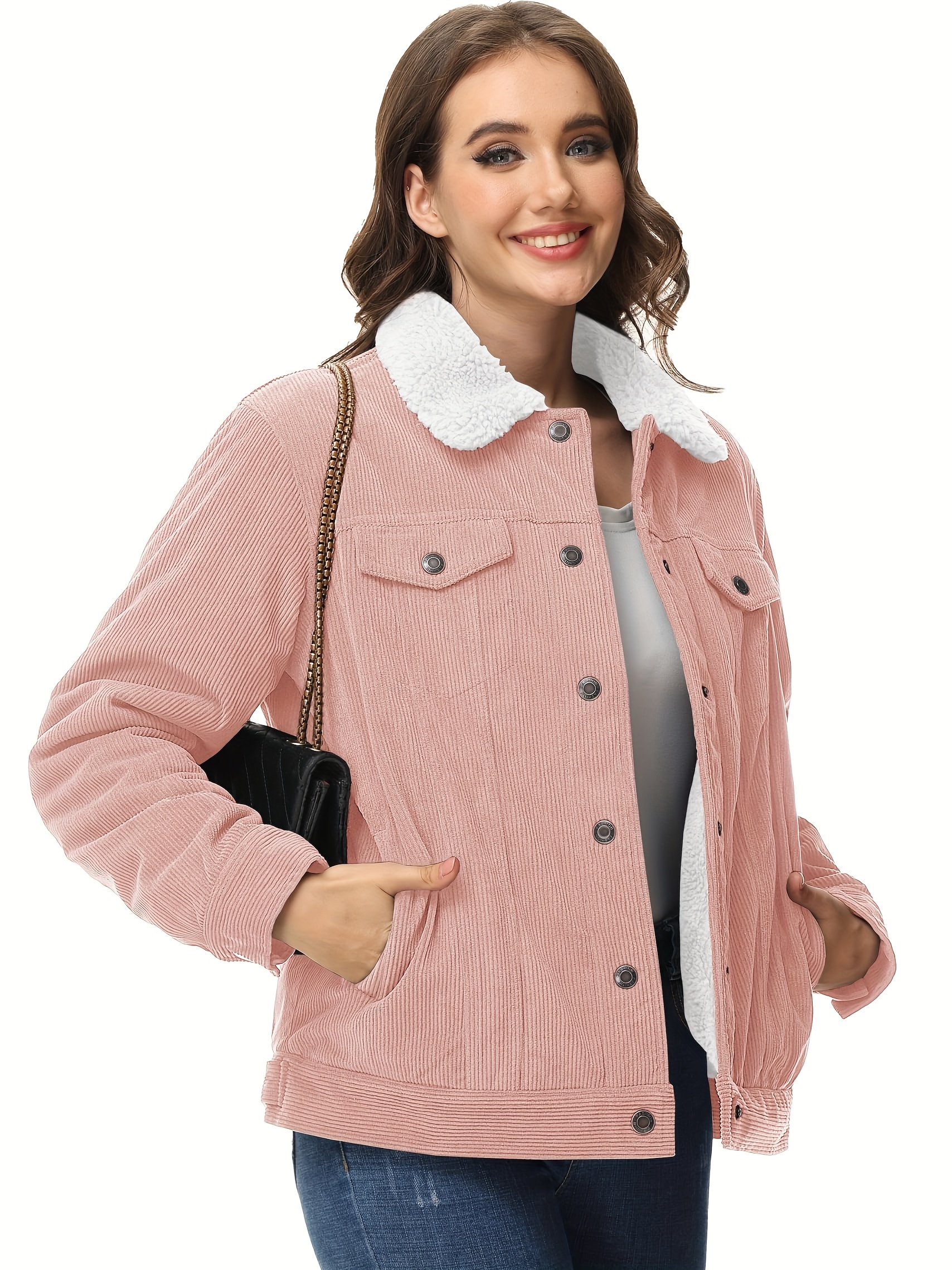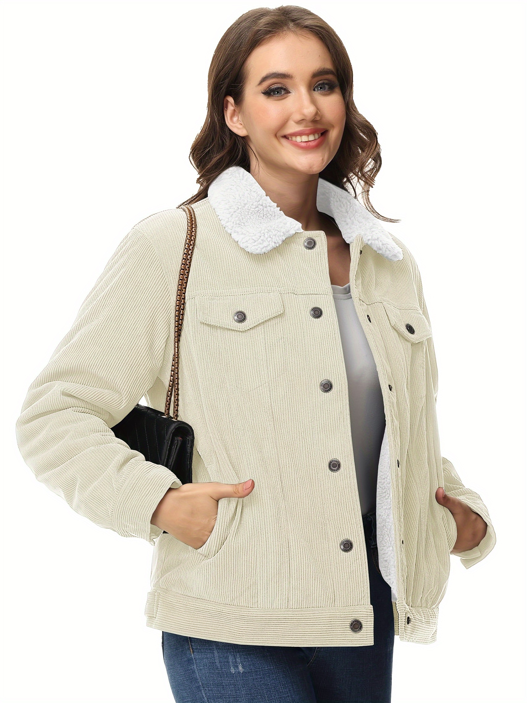Women’s Corduroy Jacket Fleece Lined Warm Winter Coat Button Casual Jacket with 4 Pockets Solid Outdoor Activities Jackets with Adjustable Hem Button Thermal Soft Cozy Clubbing Corduroy Jackets