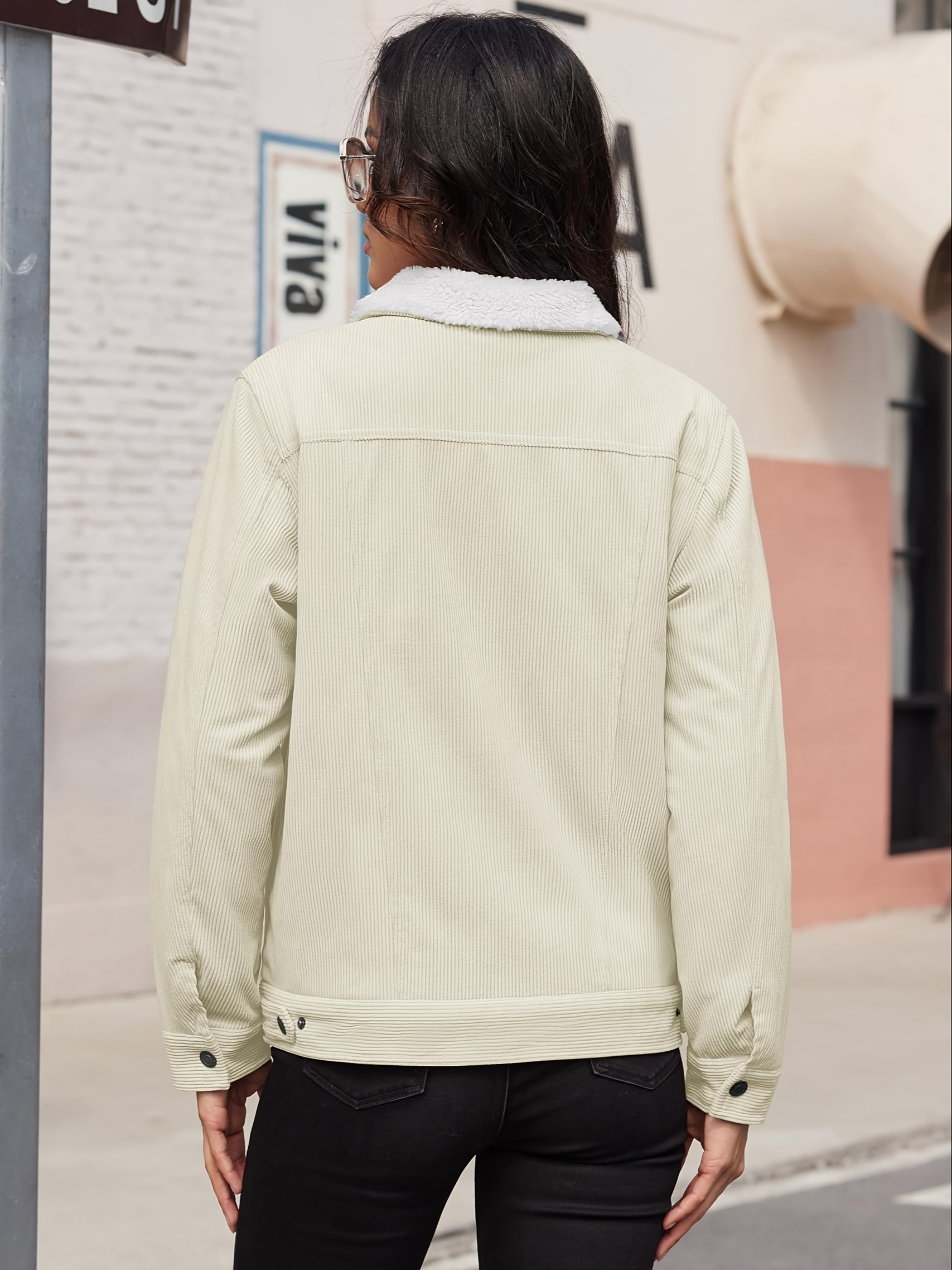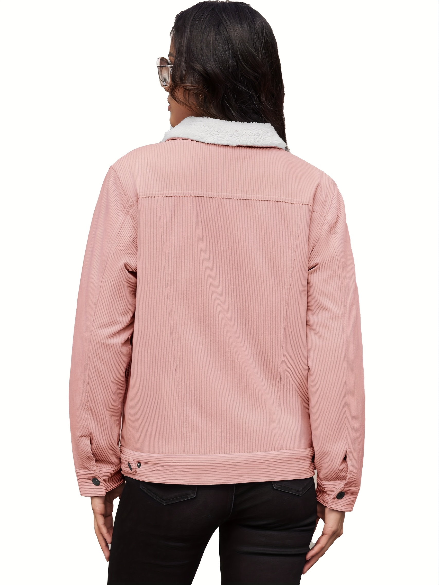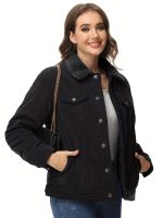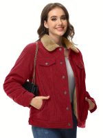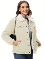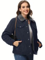 Home Women's Athleisure Women’s Corduroy Jacket Fleece Lined Warm Winter Coat Button Casual Jacket with 4 Pockets Solid Outdoor Activities Jackets with Adjustable Hem Button Thermal Soft Cozy Clubbing Corduroy Jackets