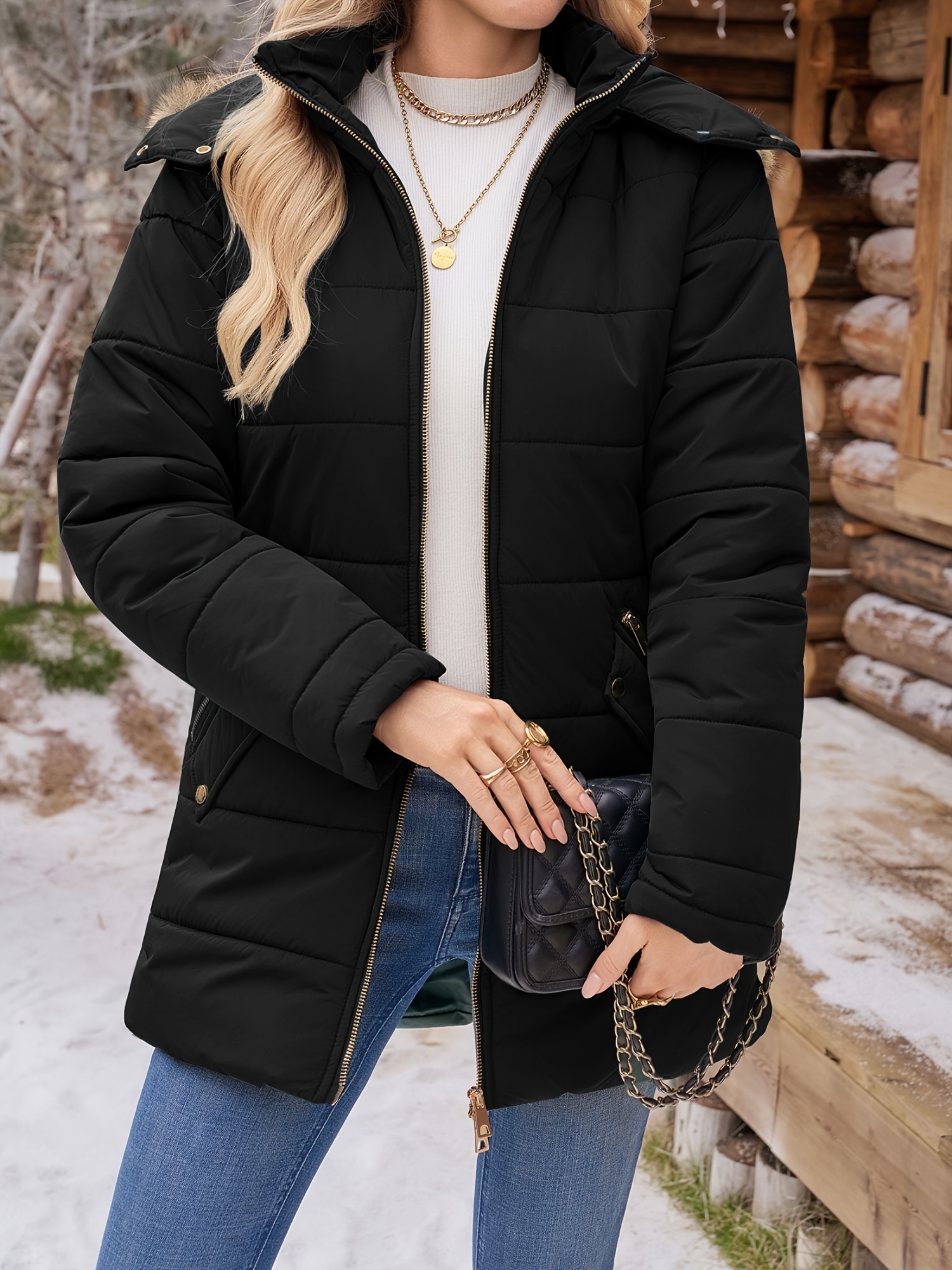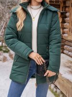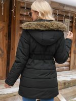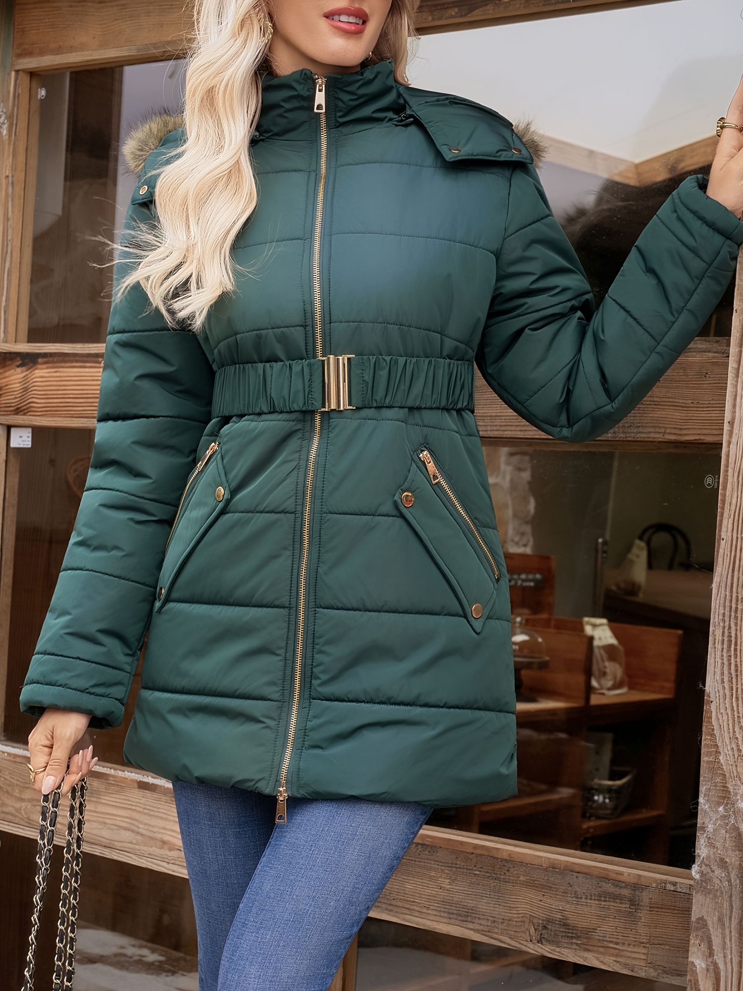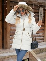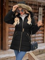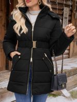 Women’S Cozy Mid-Length Hooded Jacket – Casual Long Sleeve Zipper Front, Solid Color, Adjustable Belt, Perfect for Fallu002FWinter Outdoor Activities, Casual Wear Jacket | Hooded Jacket | Zippered Jacket
