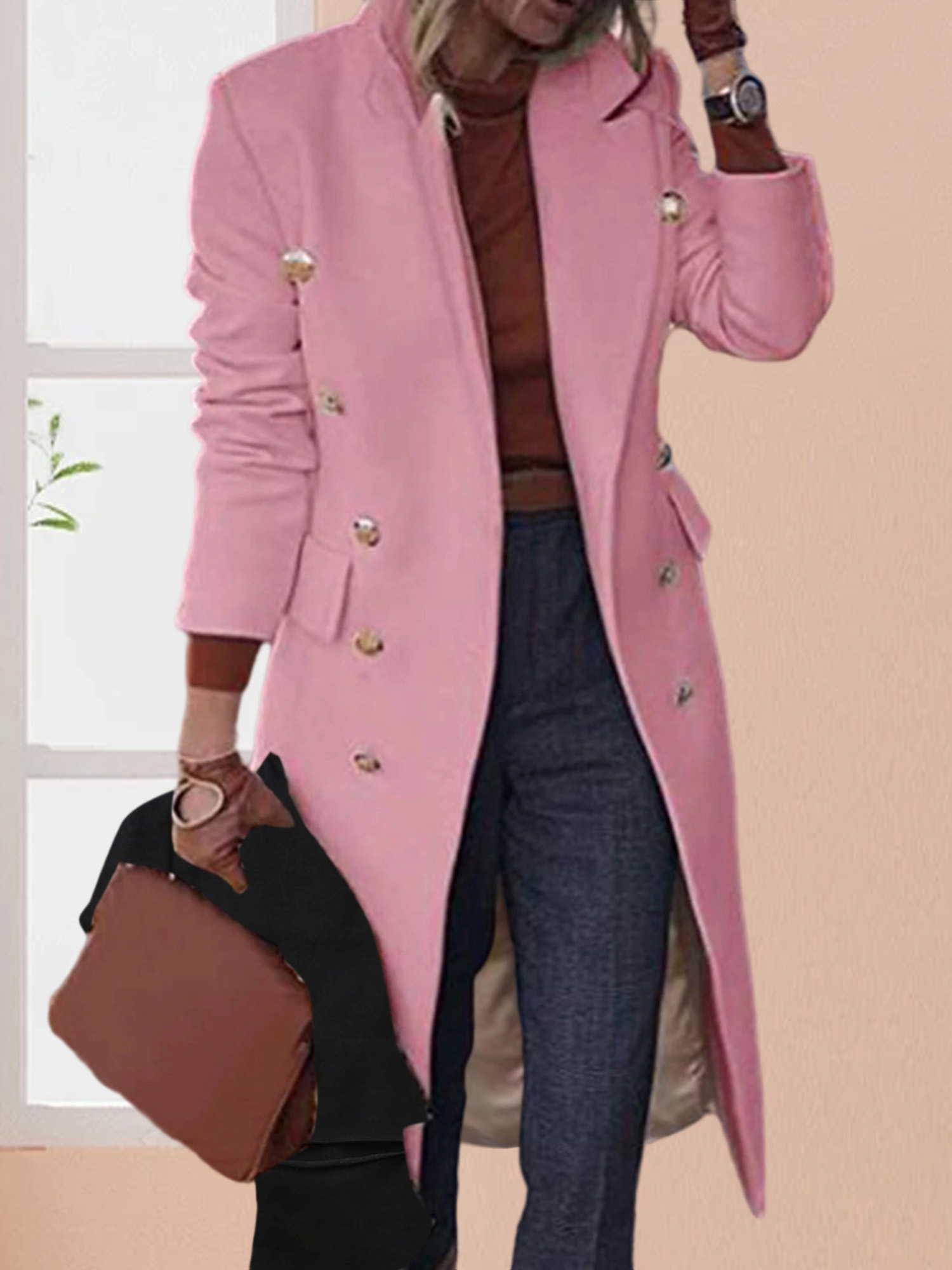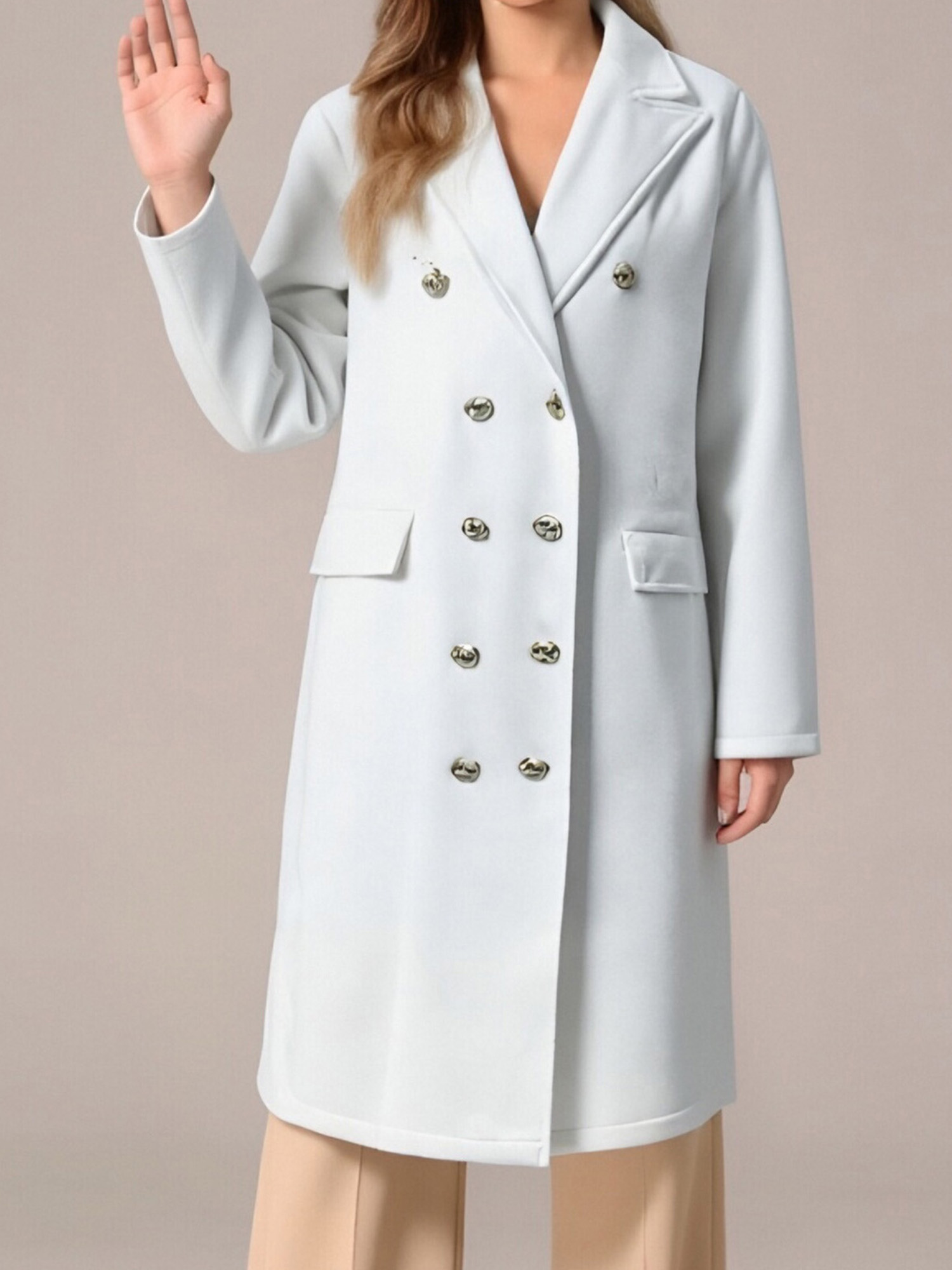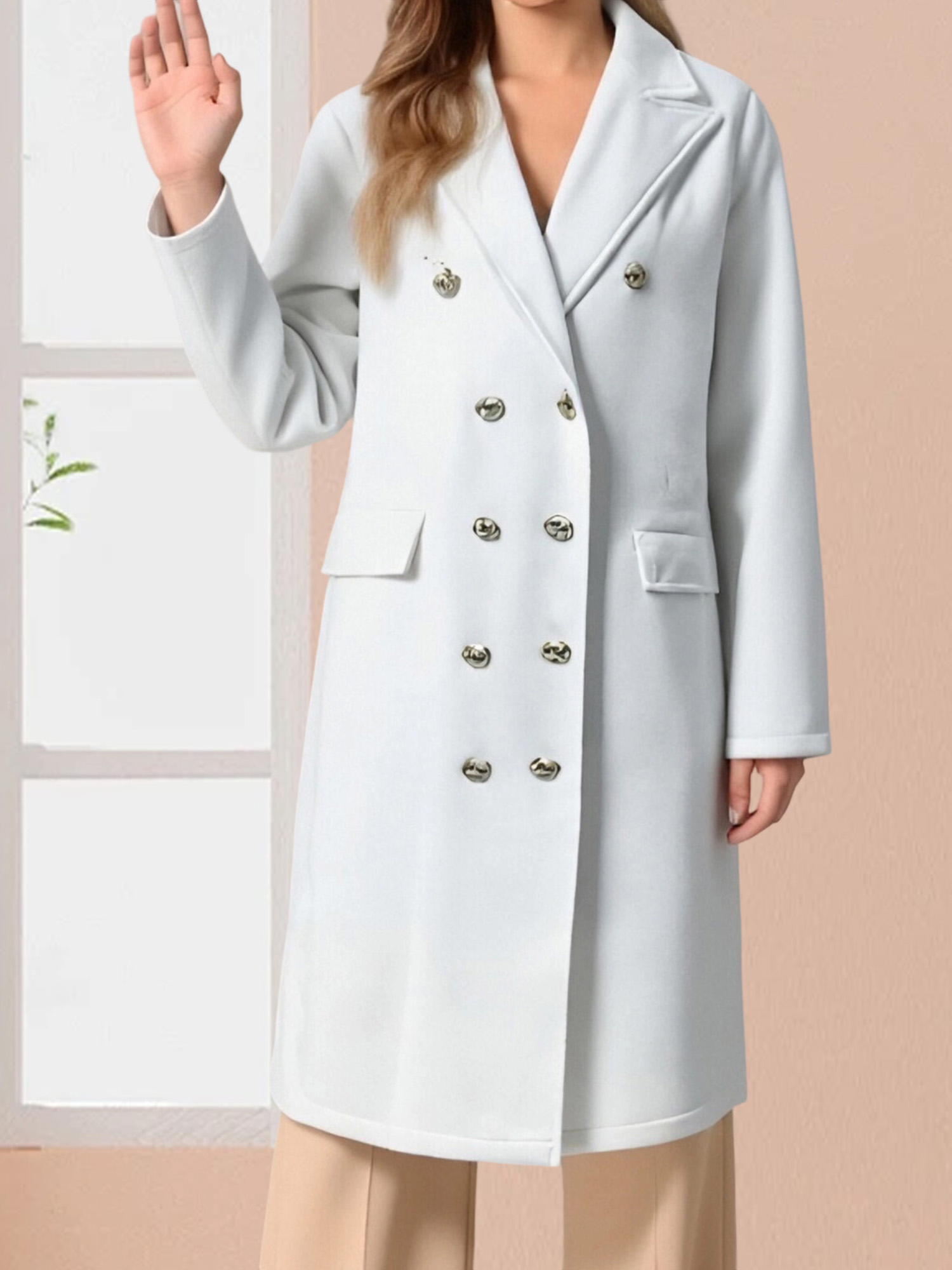 Home Women's Coats & Jackets Women’S Elegant Double Breasted Pea Coat – Classic Long Sleeve Solid Color Winter Coat with Golden-Tone Buttons, Structured Fit & Tailored Silhouette, Durable Fabric for Fallu002FWinter, Versatile for Casual & Formal Outfits (Office, Semi-Formal Events)
