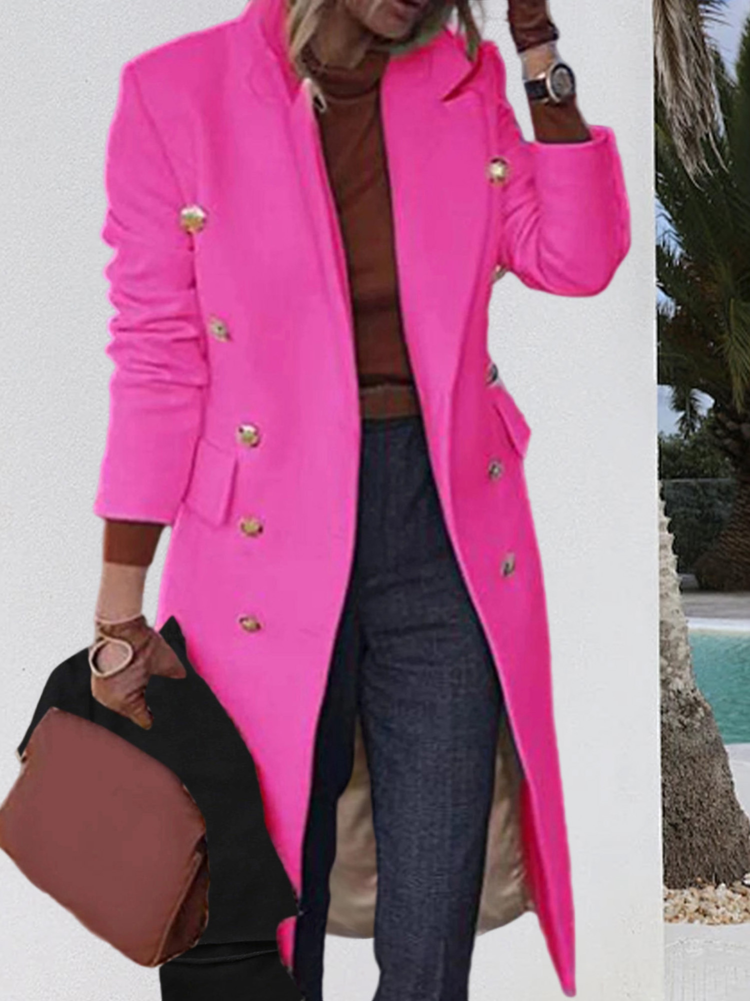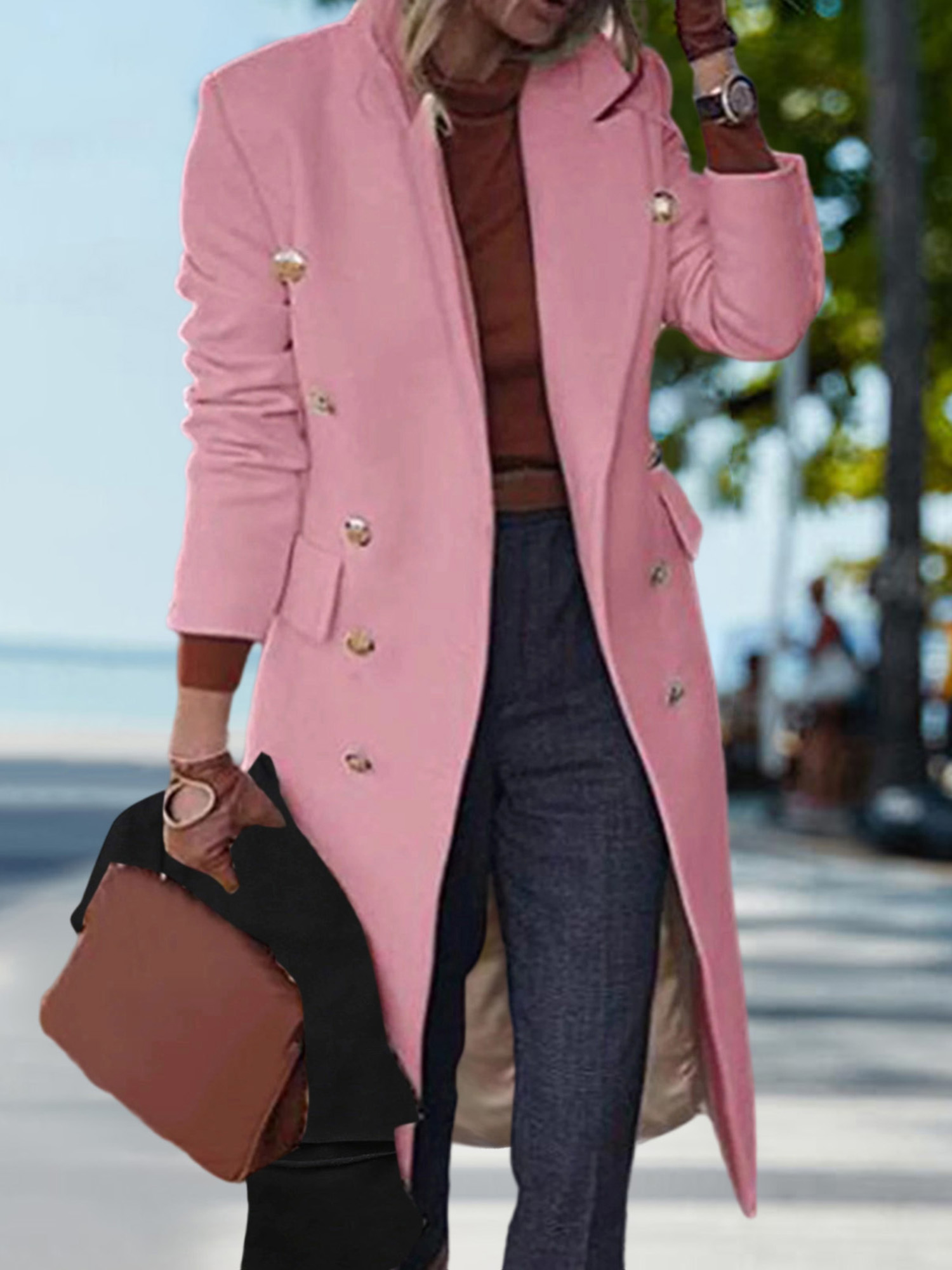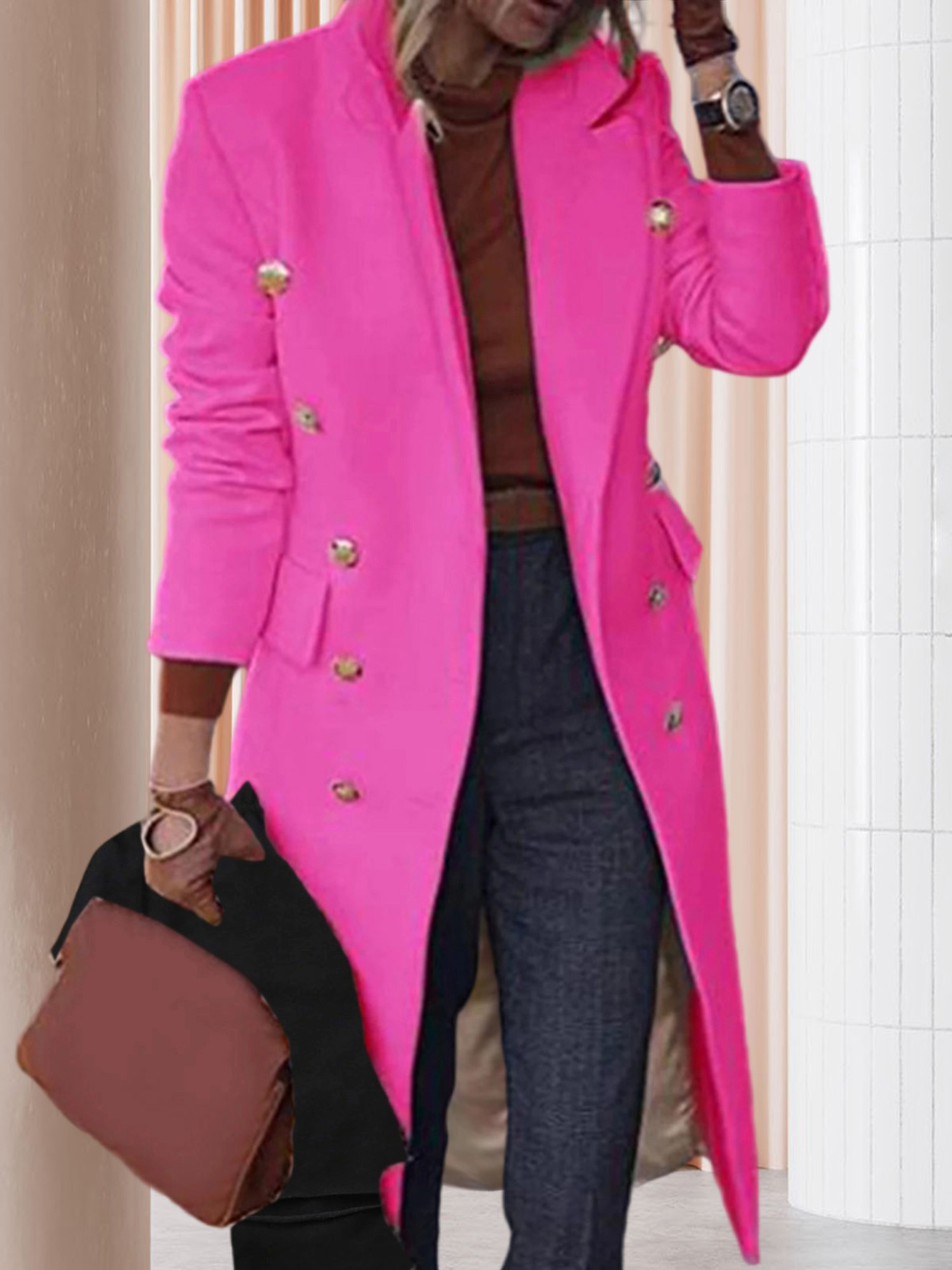 Home Women's Coats & Jackets Women’S Elegant Double Breasted Pea Coat – Classic Long Sleeve Solid Color Winter Coat with Golden-Tone Buttons, Structured Fit & Tailored Silhouette, Durable Fabric for Fallu002FWinter, Versatile for Casual & Formal Outfits (Office, Semi-Formal Events)