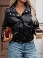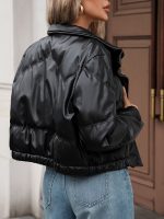 Home Women's Athleisure Women’s Elegant Short Winter Jacket – Black Full-Zip H-Line Coat with Stand Collar, Full-Length Zipper & Structured Hanger Fit | Casual to Semi-Formal Outerwear for Fallu002FWinter | Non-Stretch Fabric (No Belt Loops) | Easy-Care Spot Clean Only, Lightweight Jacket for Women, Coats for Women, Warm Jacket for Women, Winter Coats for Women, Fleece Jacket for Women, Fall Fashion, Seasonal Layering, Durable Construction, Office Wear