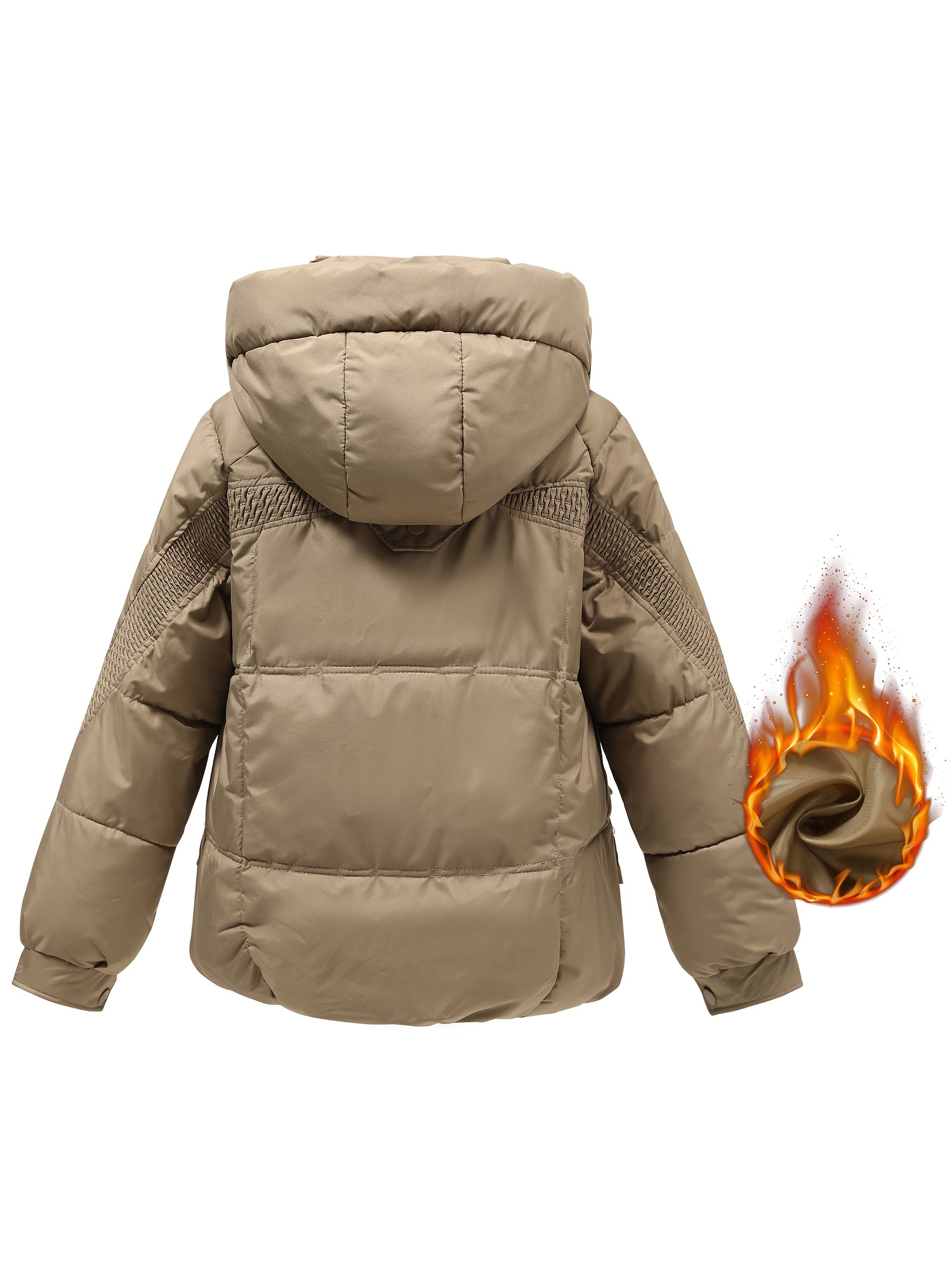 Home Women's Athleisure Women’S Hooded Zip-Up Jacket – Winter Warmth Windproof Coat with Full-Zip Closure, Beigeu002F Tanu002FBlacku002F – Non-Stretch Outer Shell for Cold Weather, Outdoor Activities, Everyday & Formal Events – Easy-Care Casual Outerwear, Winter Jacket