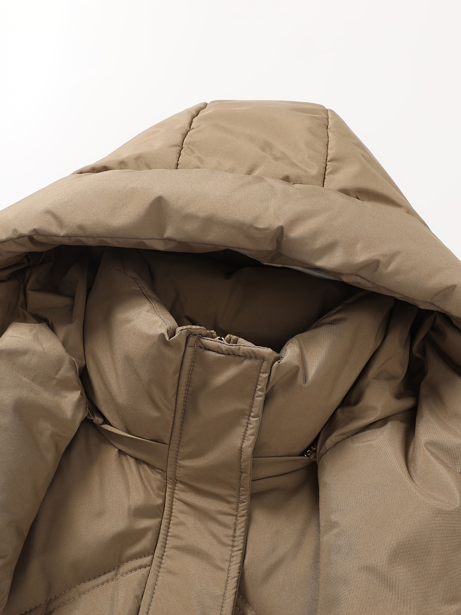 Women’S Cozy Mid-Length Hooded Jacket – Casual Long Sleeve Zipper Front, Solid Color, Adjustable Belt, Perfect for Fallu002FWinter Outdoor Activities, Casual Wear Jacket | Hooded Jacket | Zippered Jacket
