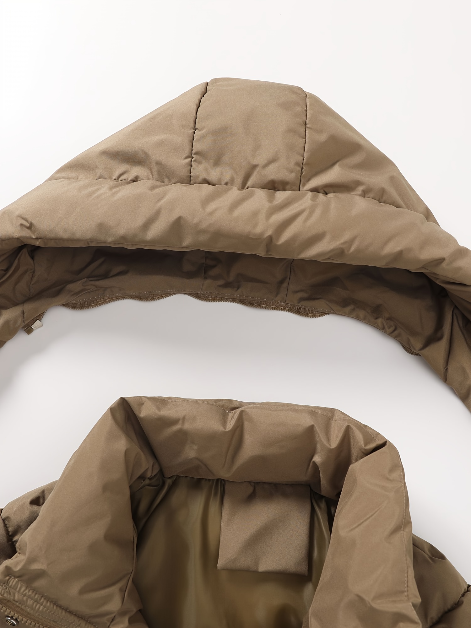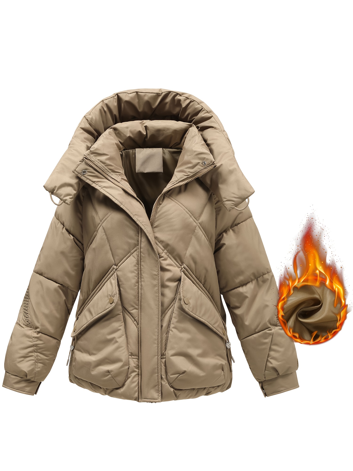 Women’S Hooded Zip-Up Jacket – Winter Warmth Windproof Coat with Full-Zip Closure, Beigeu002F Tanu002FBlacku002F – Non-Stretch Outer Shell for Cold Weather, Outdoor Activities, Everyday & Formal Events – Easy-Care Casual Outerwear, Winter Jacket