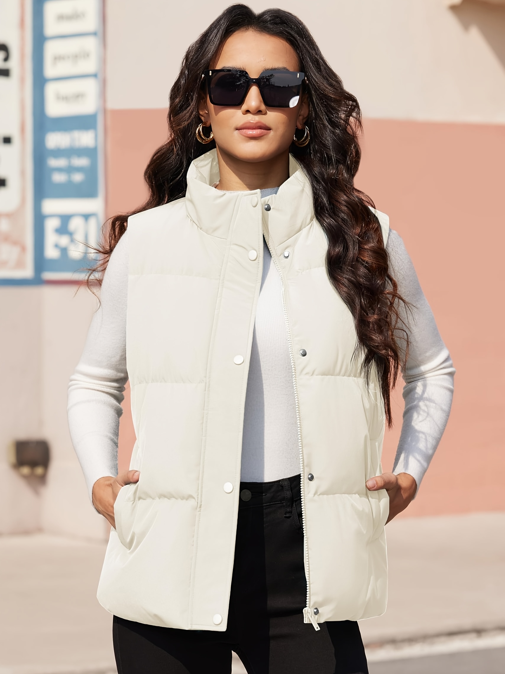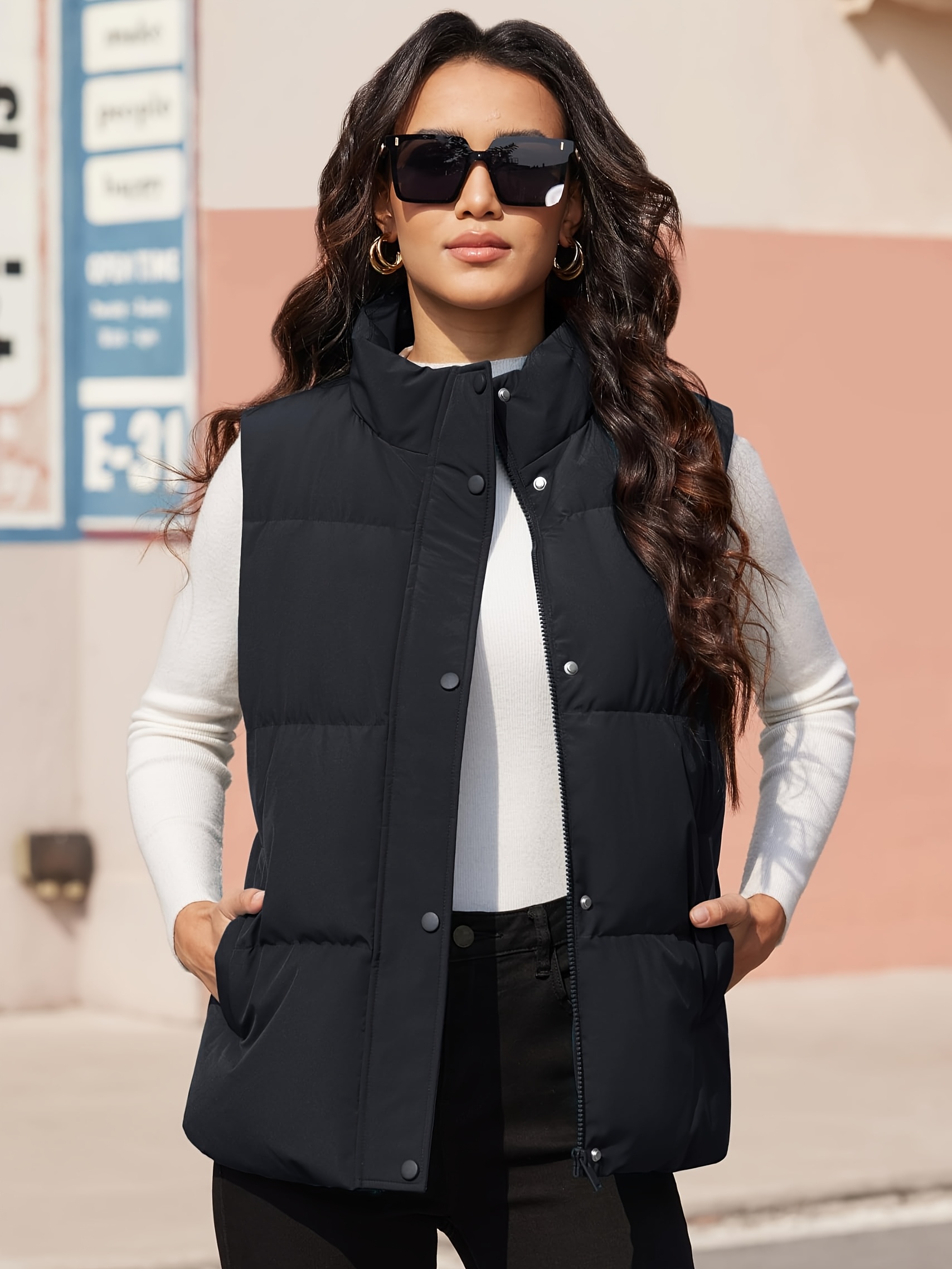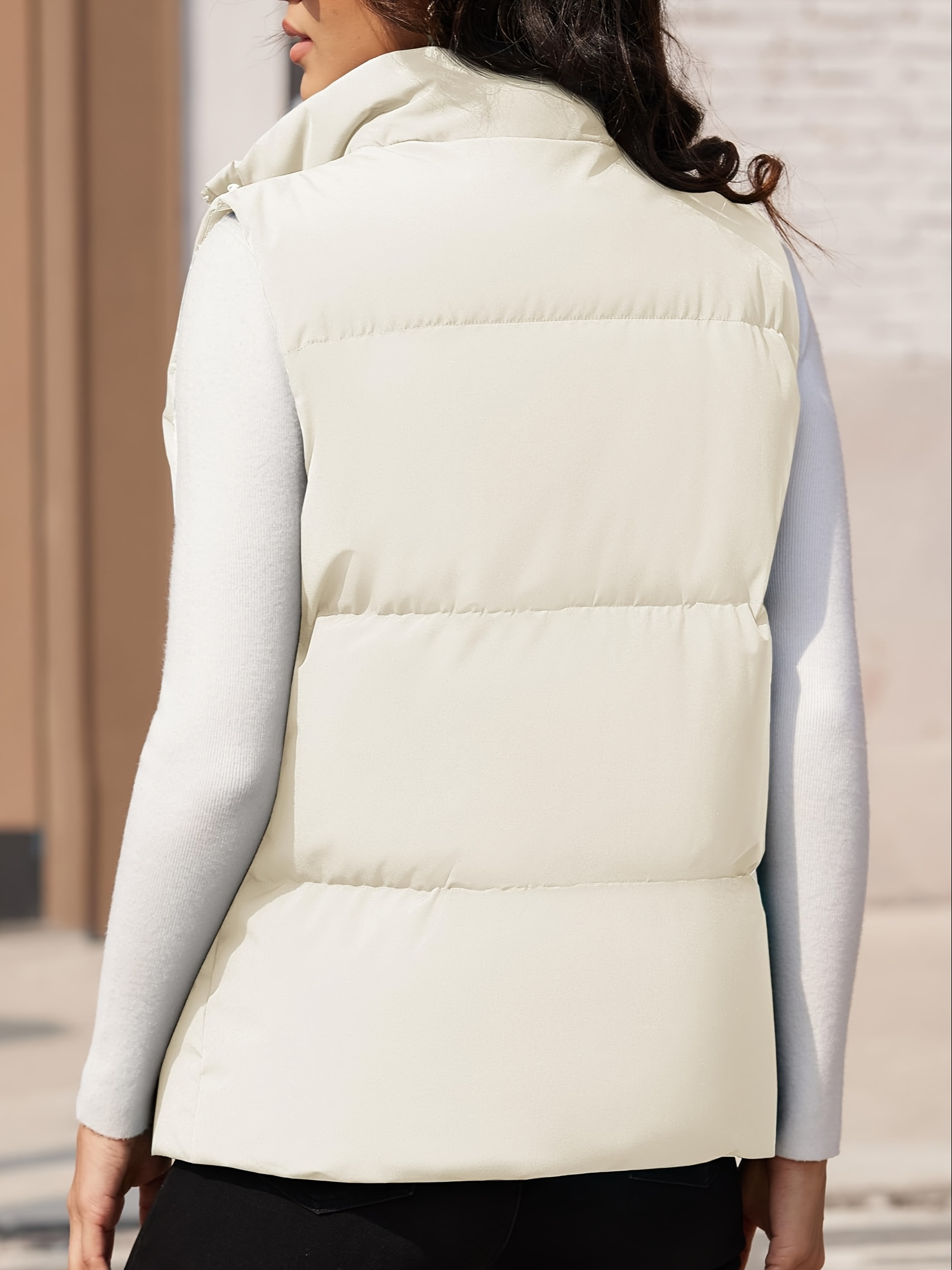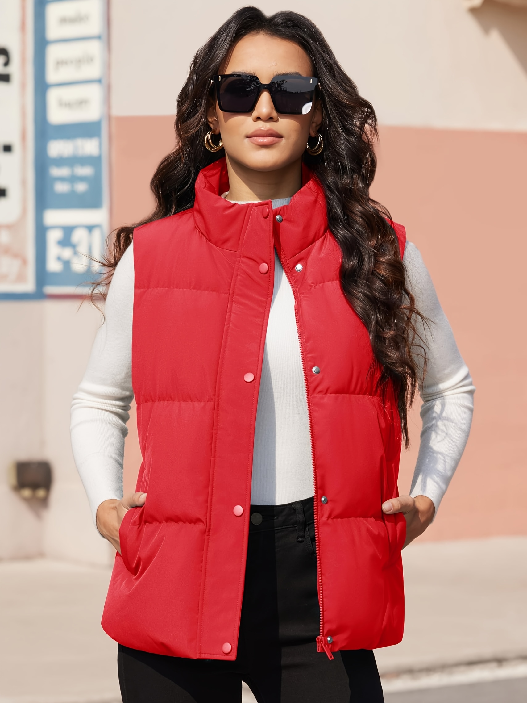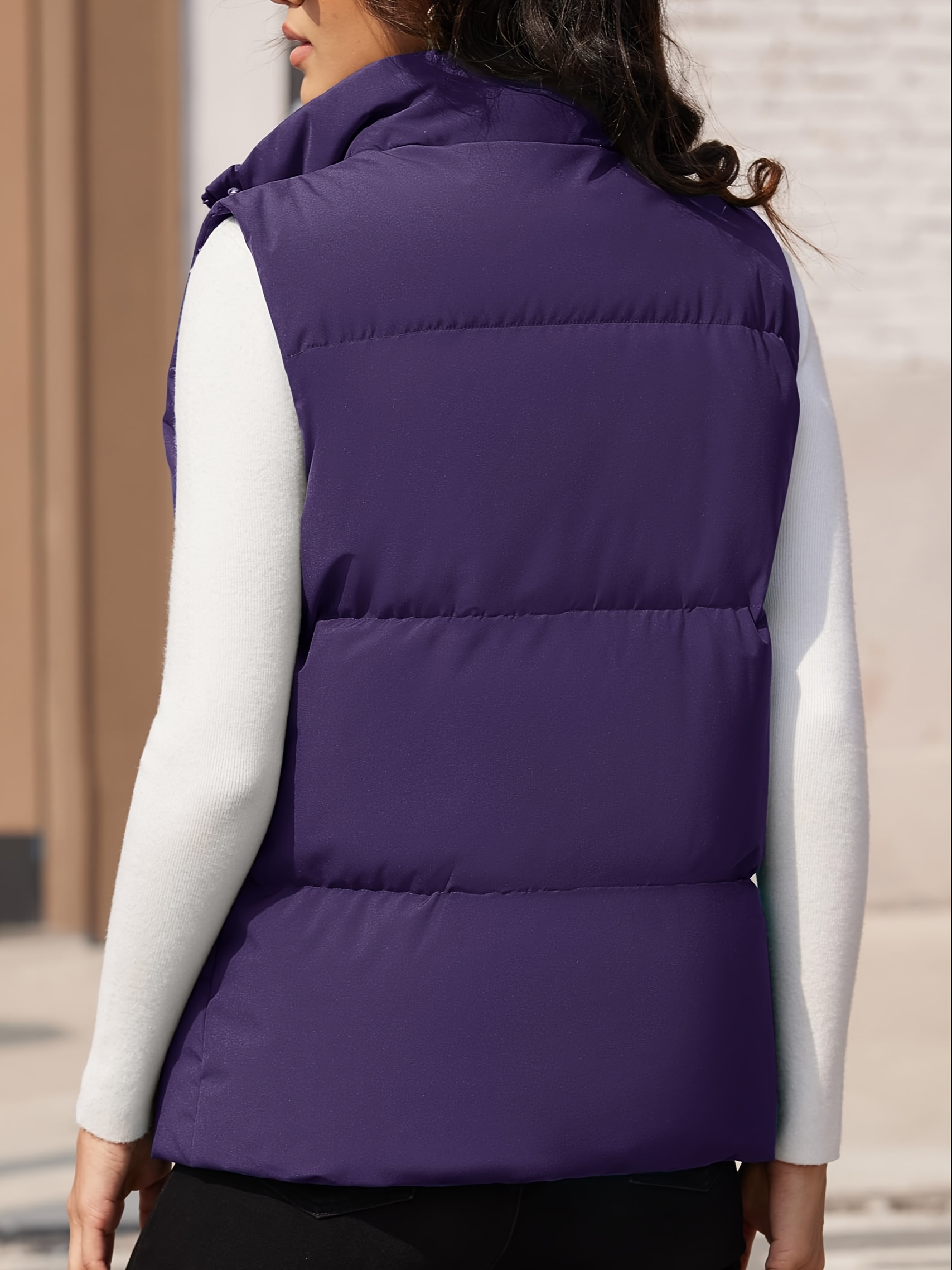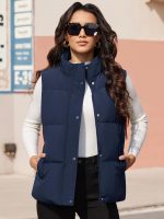 Women’S Puffer Vest Oversized Zip Up Outerwear Lightweight Winter Padded Jacket With Pockets Stand Collar Windproof Quited Outerwear For Runnning Camping Fishing Hiking Working